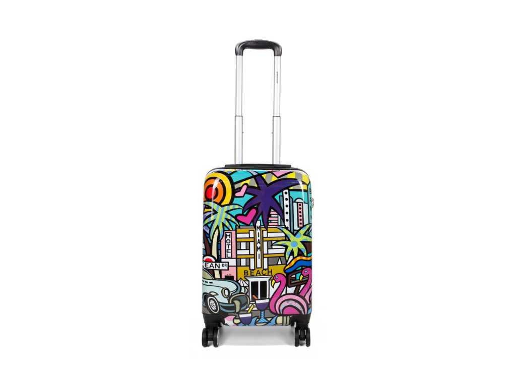 Cestovný kufor v modernom dizajne francúzskej značky Madisson s motívom Miami. Má jedinečný vzhľad, ktorý ho odlišuje od ostatných batožín svojou neobvyklou a farebnou potlačou. Kufor je odolný voči nešetrnému zaobchádzaniu vďaka kombinácii materiálu ABS a polykarbonátu.