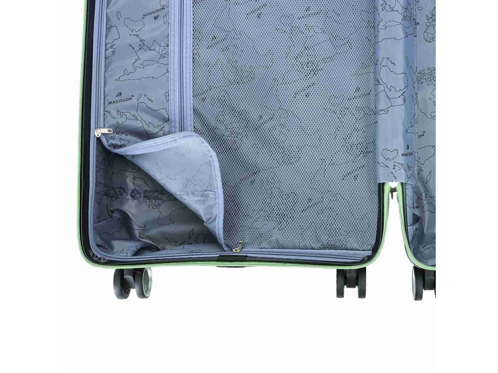 Cestovný kufor 77 cm francúzskej značky Madisson vo svetlo zelenej farbe. Polypropylénový kufor Madisson ponúka hneď množstvo výhod, a to nízku hmotnosť, takmer nulovú rozbitnosť, cenovú dostupnosť pre každého, solídne spracovanie av neposlednom rade aj elegantný a moderný drážkovaný vzhľad.