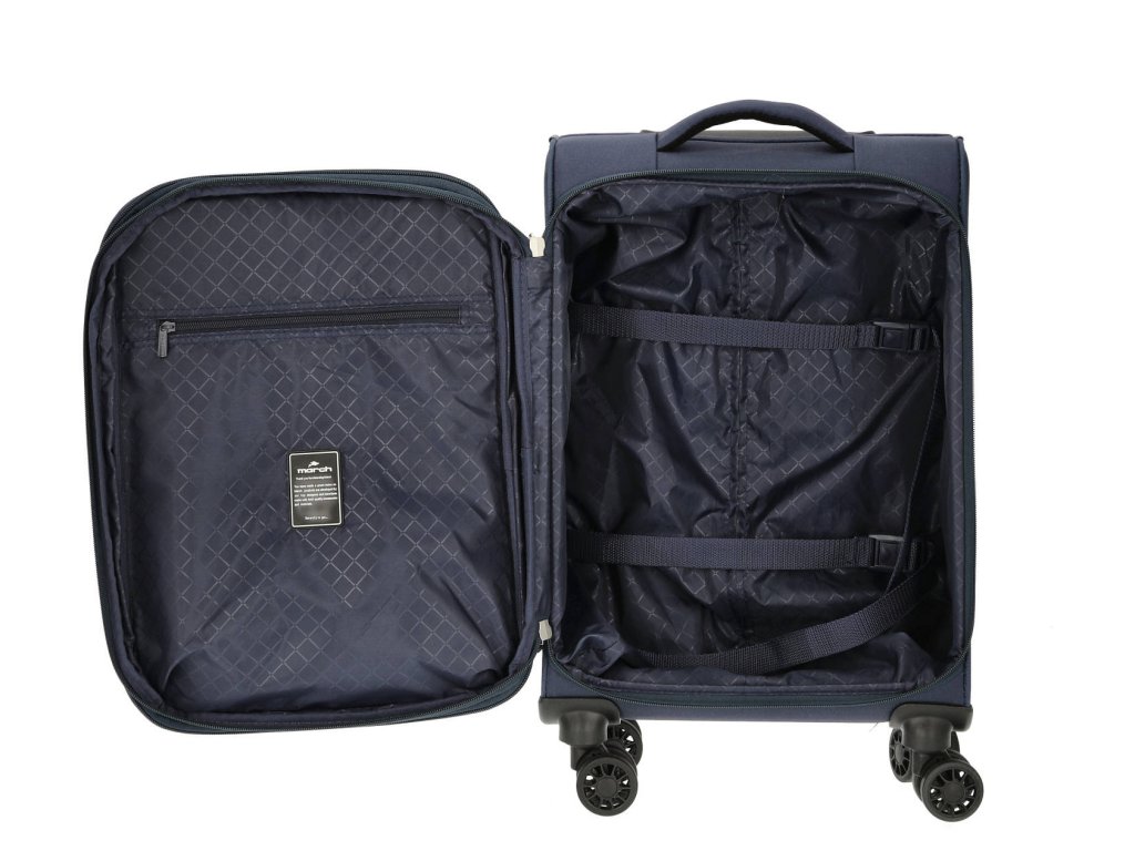 Ultraľahký cestovný textilný kufor 55 cm holandskej značky March zo série Carter-SE v modrej farbe.