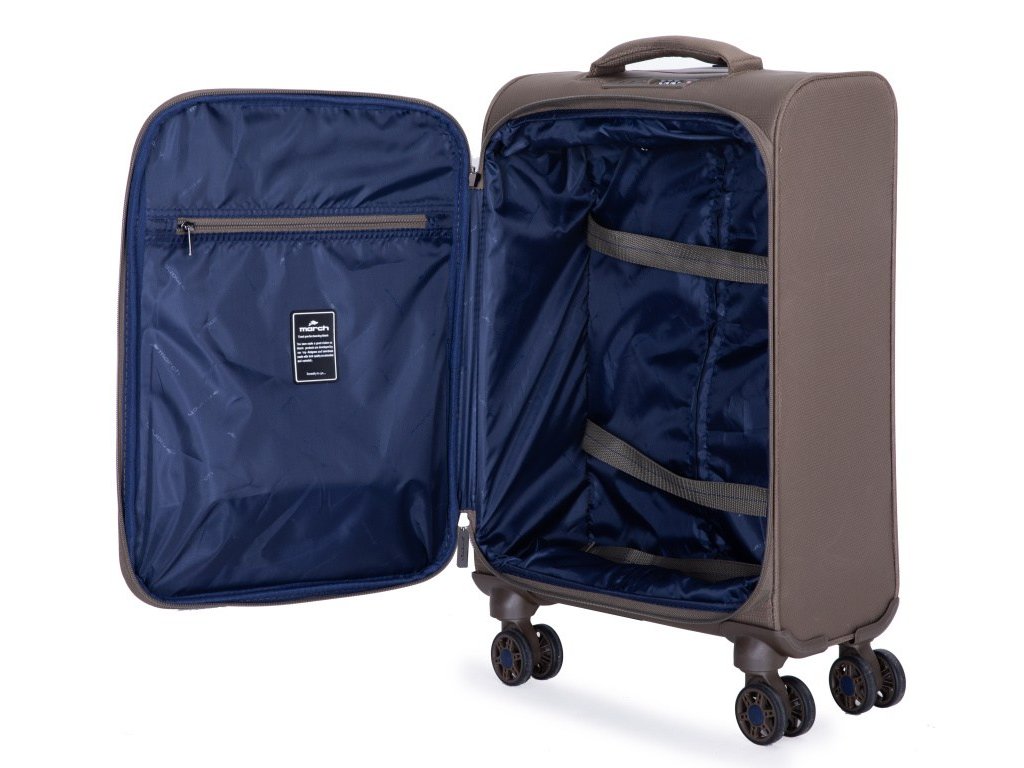 Cestovný textilný menší kufor z extrémne ľahkého materiálu holandskej značky March v modernej kašmírovej farbe. Nová technológia odľahčeného materiálu Vám prinesie maximálne pohodlie na cestách. Vydajte sa štýlovo na cesty s novým radom Tourer.