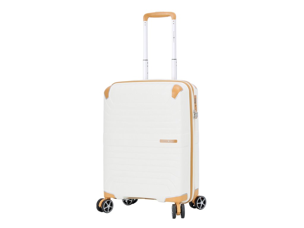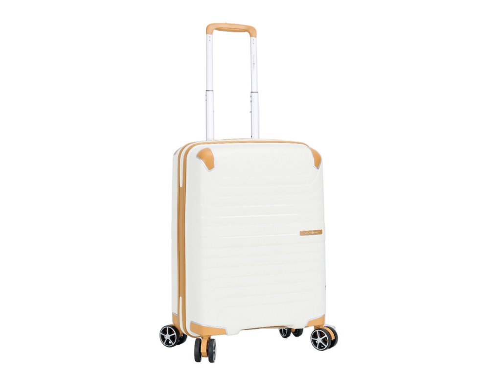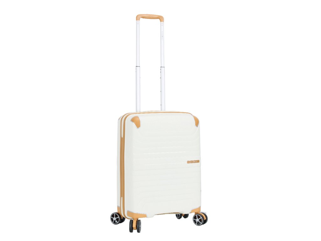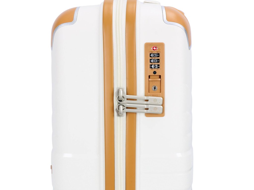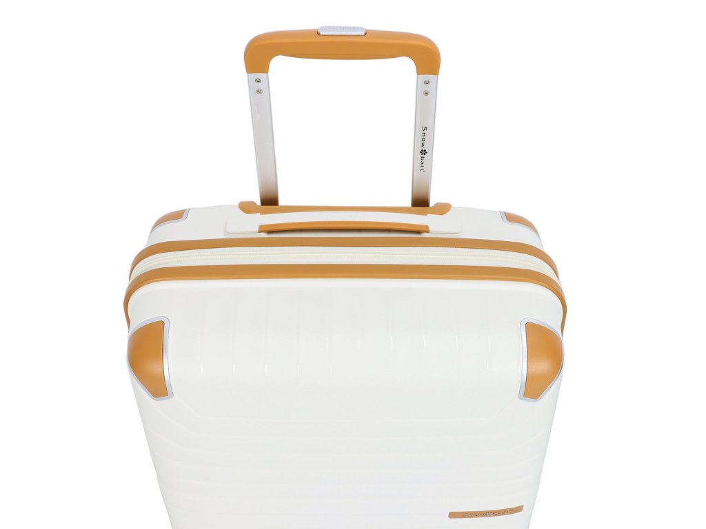 Cestovný kabínový kufor francúzskej značky Snowball Corners v bielej farbe s doplnkami vo svetlo hnedej farbe, ktorý ponúka hneď množstvo výhod, a to jedinečný dizajn, vystužené rohy čím sa stáva kufor odolnejší voči rozbitiu av neposlednom rade aj elegantný vzhľad. Kufre tohto radu majú zosilnený zips, ktorý je odolný proti vlámaniu a chráni veci v kufri pred vlhkosťou. Výrobca poskytuje predĺženú záruku 5 rokov.