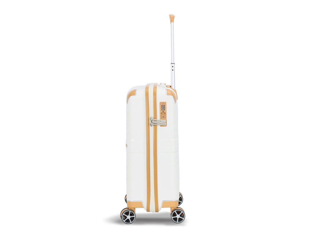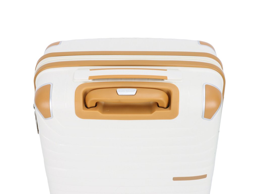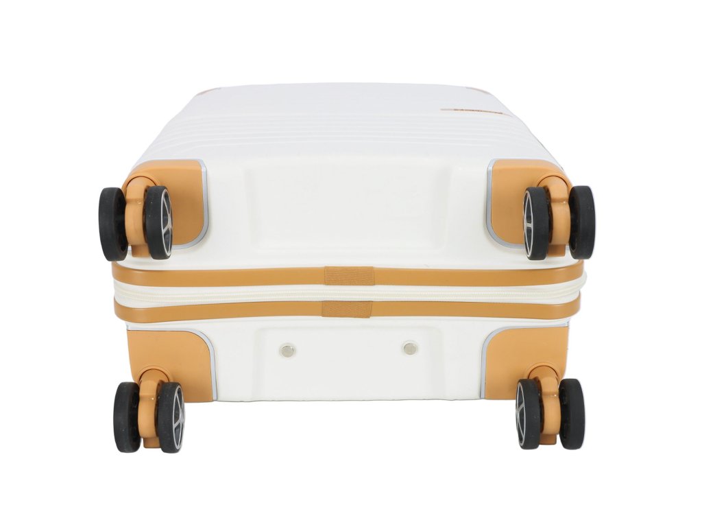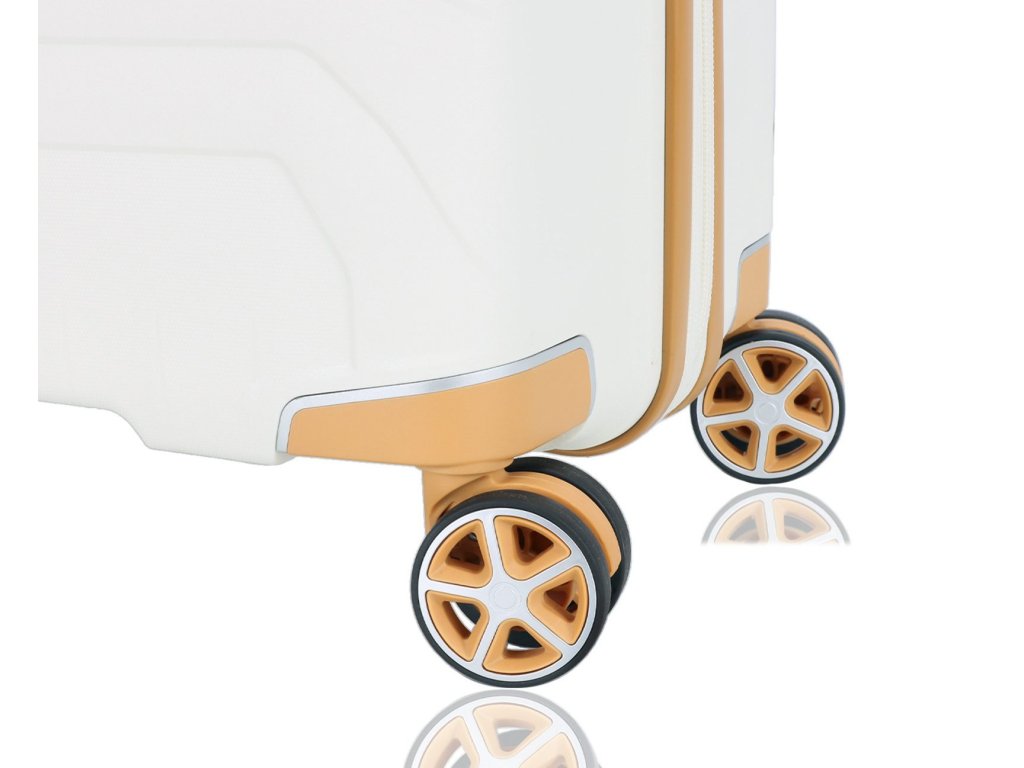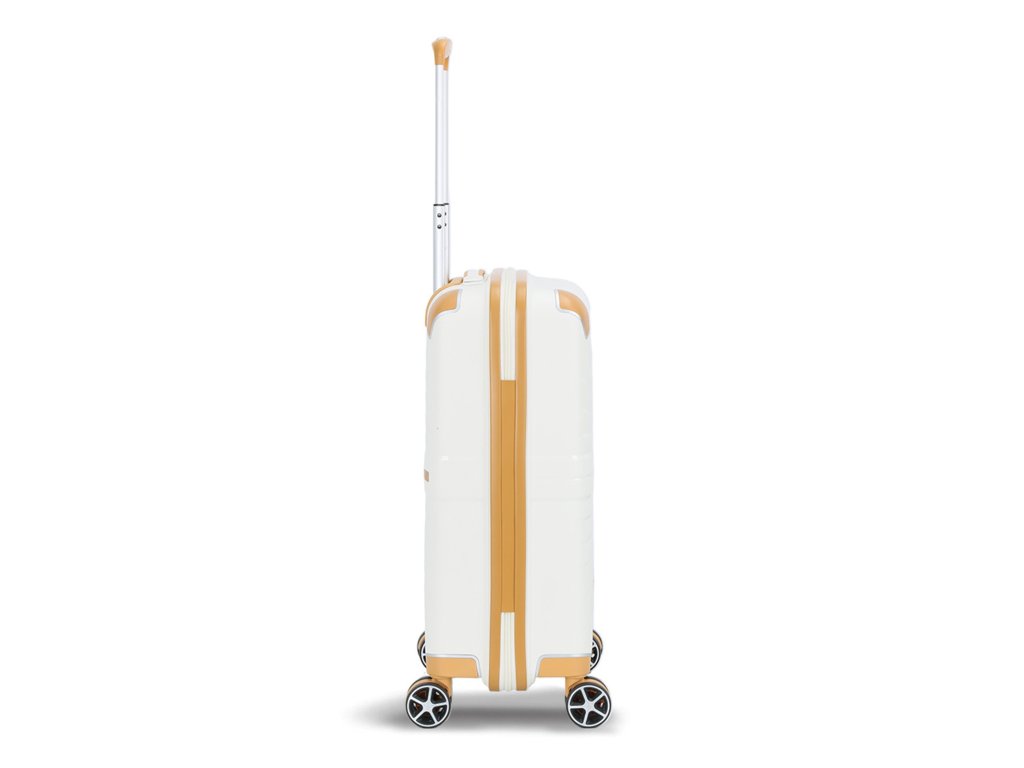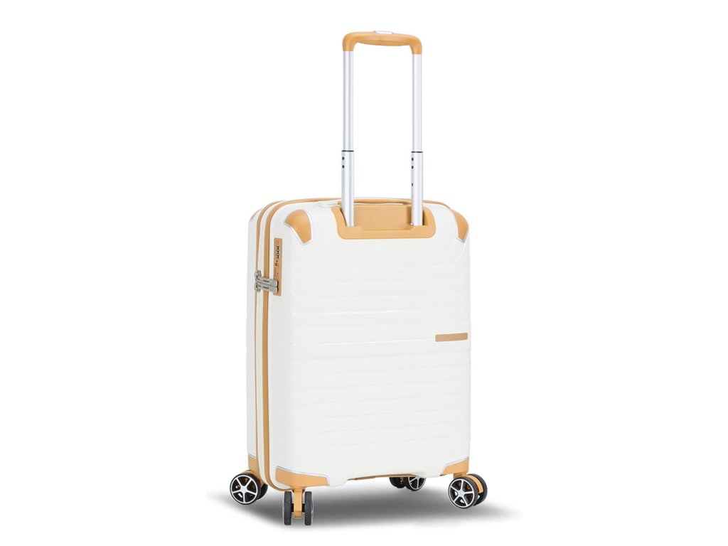Cestovný kabínový kufor francúzskej značky Snowball Corners v bielej farbe s doplnkami vo svetlo hnedej farbe, ktorý ponúka hneď množstvo výhod, a to jedinečný dizajn, vystužené rohy čím sa stáva kufor odolnejší voči rozbitiu av neposlednom rade aj elegantný vzhľad. Kufre tohto radu majú zosilnený zips, ktorý je odolný proti vlámaniu a chráni veci v kufri pred vlhkosťou. Výrobca poskytuje predĺženú záruku 5 rokov.