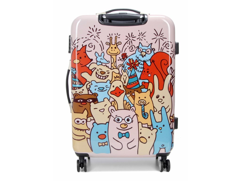 Cestovný kufor 65 cm s veselým motívom zvieratiek od značky Snowball v ružovej farbe s farebnou potlačou. S týmto veselým kufrom sa stane cestovanie veľkou zábavou. Je oddeliteľný na dve polovice, s množstvom vreciek a priehradiek vo vnútri, čo má vplyv na funkčnosť. Vybavte sa na cesty touto designovou batožinou od kvalitnej značky.