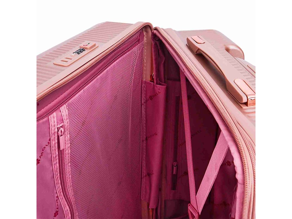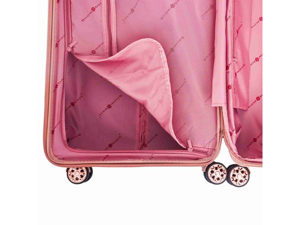 Cestovný kufor veľkosti L od francúzskej značky Snowball série Shine vo svetlo ružovej farbe . S týmto ľahkým kufrom sa stane cestovanie veľkou zábavou. Kufor je vyrobený z polykarbonátu, ktorý je ľahký, pevný a pritom pružný, vďaka tomu vydrží aj značnú záťaž. Hlavné vrecko kufra je vybavené bezpečnostným zipsom.
