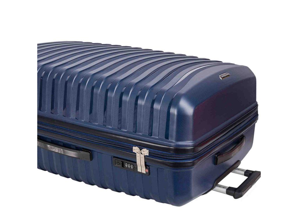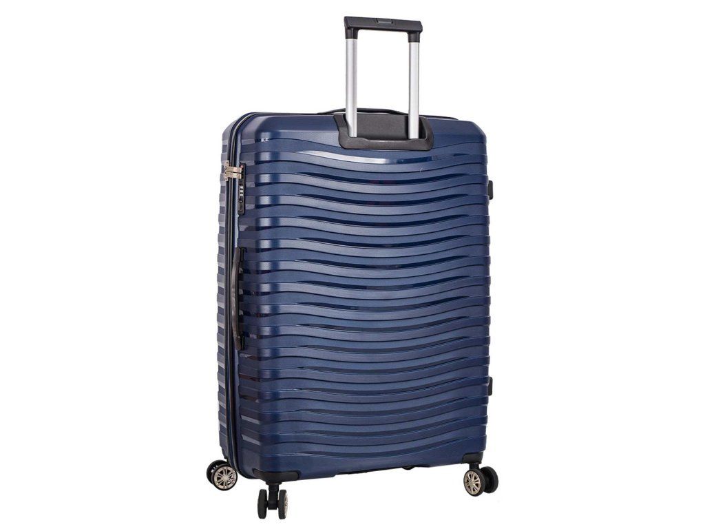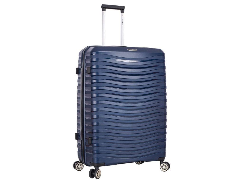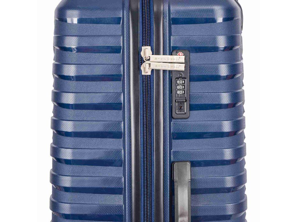 Cestovný polypropylénový veľký kufor značky Snowball série Waves v tmavo modrej farbe. Polypropylén je jedným z najlepších a najspoľahlivejších materiálov používaných v súčasnosti pri výrobe batožiny. Je vhodný aj pre náročných zákazníkov vďaka veľmi kvalitnému a precíznemu spracovaniu. Hlavné vrecko kufra je vybavené bezpečnostným zipsom.