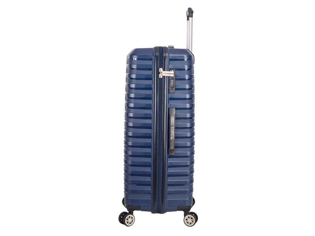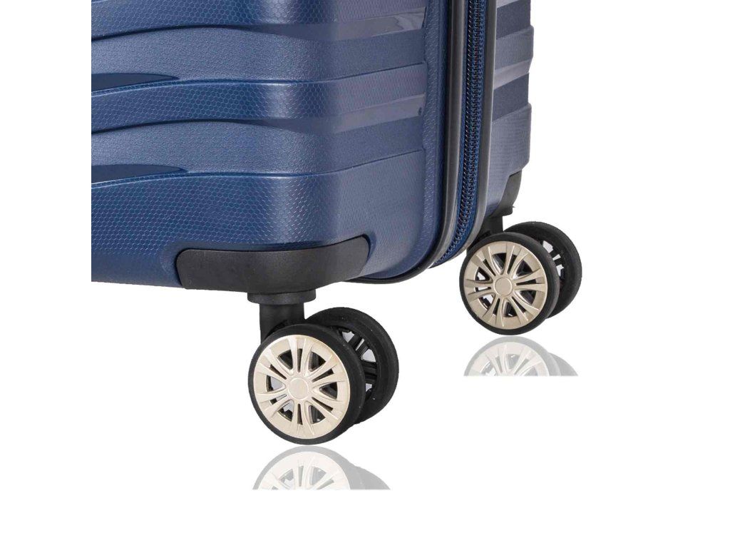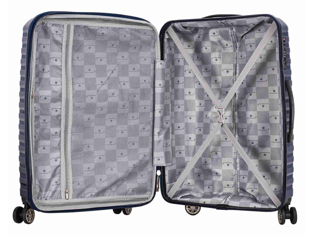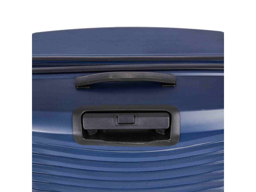Cestovný polypropylénový veľký kufor značky Snowball série Waves v tmavo modrej farbe. Polypropylén je jedným z najlepších a najspoľahlivejších materiálov používaných v súčasnosti pri výrobe batožiny. Je vhodný aj pre náročných zákazníkov vďaka veľmi kvalitnému a precíznemu spracovaniu. Hlavné vrecko kufra je vybavené bezpečnostným zipsom.