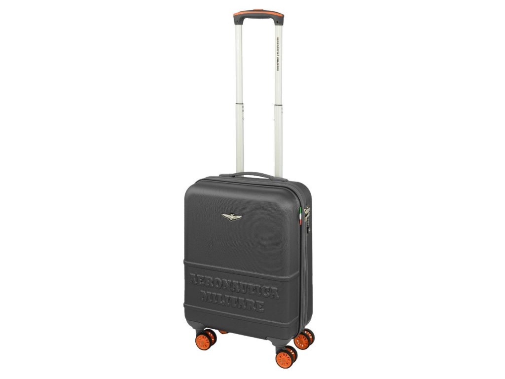 Elegantne športové plastový kabínový kufor 55 cm prestížnej značky Talianske Aeronautica Militare v antracitovej farbe.