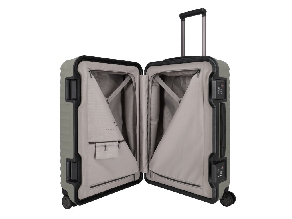 Exkluzívny plastový cestovný kufor 69 cm s prelismi v modernej šampanskej farbe nemeckej značky Titan zo série Litron Frame. Kufor je vyrobený z polykarbonátu, ktorý je ľahký, pevný a pritom pružný, vďaka tomu vydrží aj značnú záťaž. Užite si cestovanie s týmto špičkovým kufrom, ktorý poteší aj náročnejších zákazníkov.