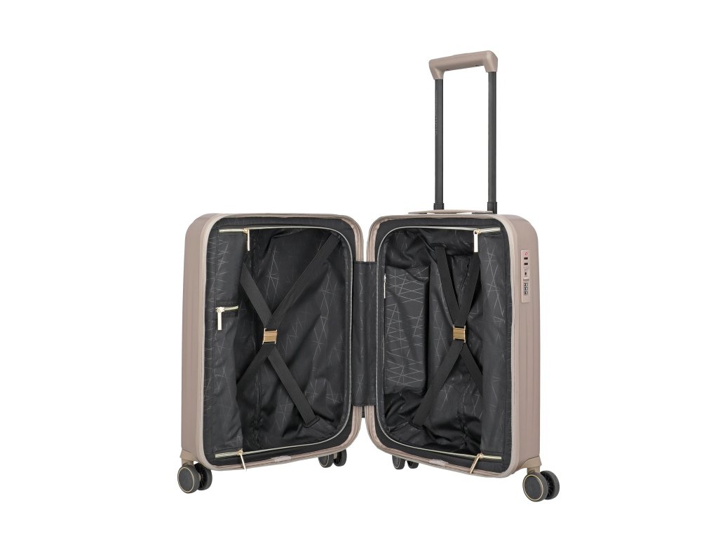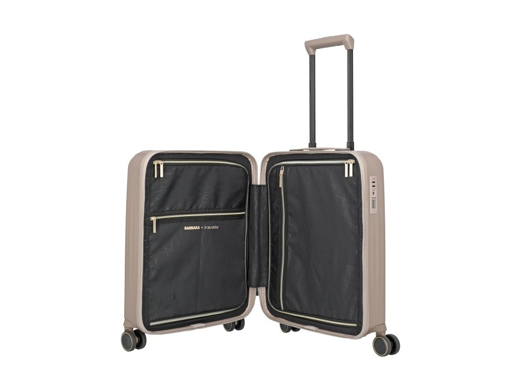 Luxusný škrupinový kufor veľkosti S na štyroch kolieskach s integrovaným TSA zámkom značky Travelite v zaujímavej pieskovej farbe . k tomu sú hardshell trolly od Novelty úplne ideálne. Pevný materiál vydrží akékoľvek zaťaženie, vnútorné usporiadanie je šikovne navrhnuté a dokonca aj šperky je možné uložiť oddelene.