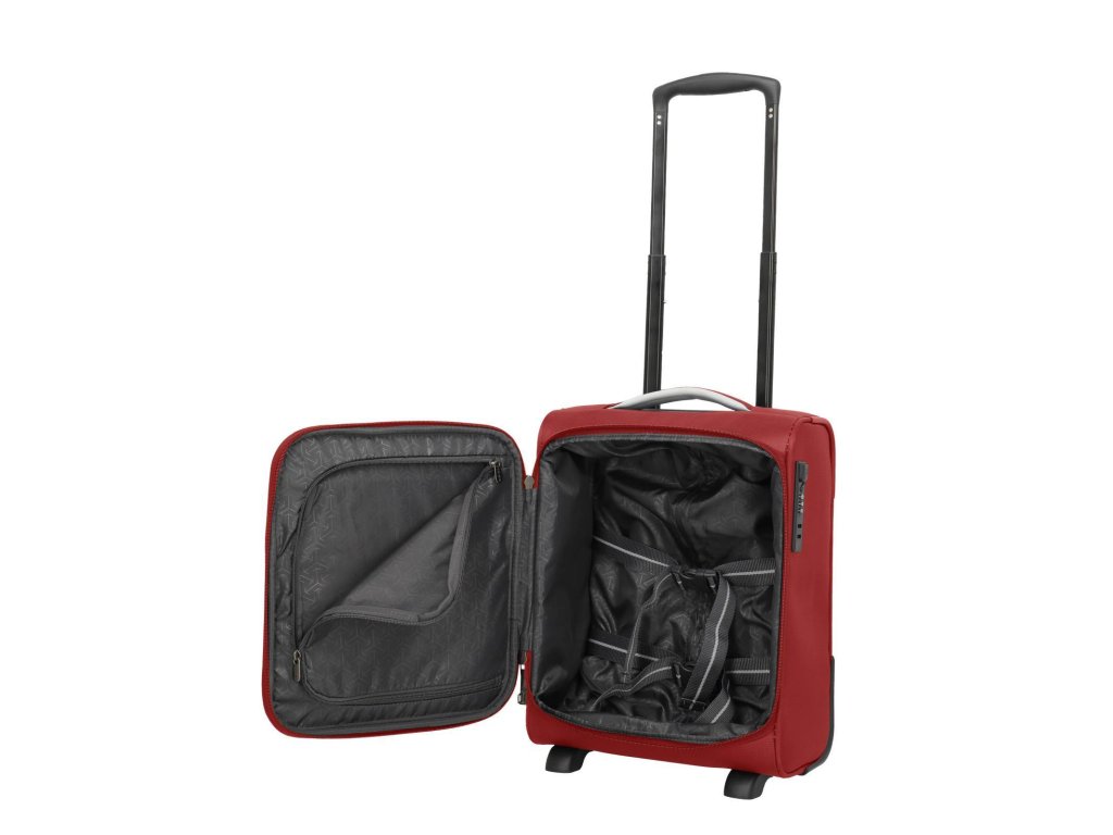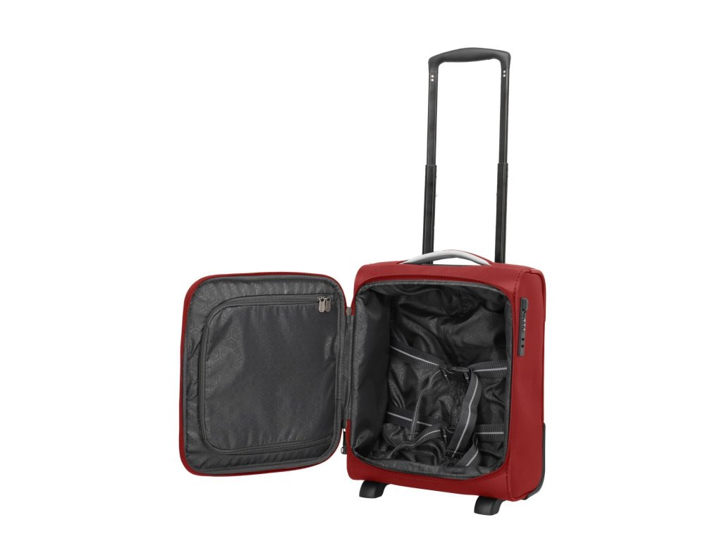 Textilný dvojkolieskový kabínový kufor nemeckej značky Travelite 40 cm v červenej farbe série Jetpack. Kvalitne prepracované kufre sa stanú vašimi vernými spoločníkmi na všetkých vašich cestách, či už pracovných alebo odpočinkových. Túto palubnú batožinu si môžete vziať so sebou do lietadla, ako vyžaduje spoločnosť Easyjet, Vueling a Wizz. Má rozmery, ktoré akceptuje väčšina leteckých spoločností.