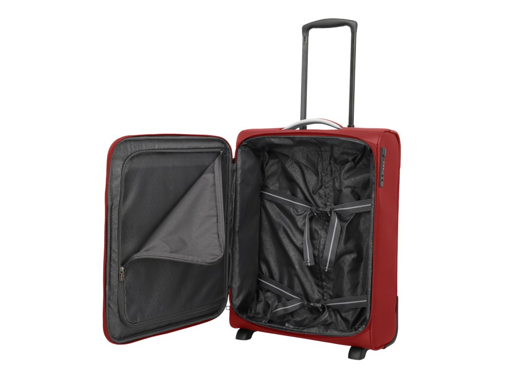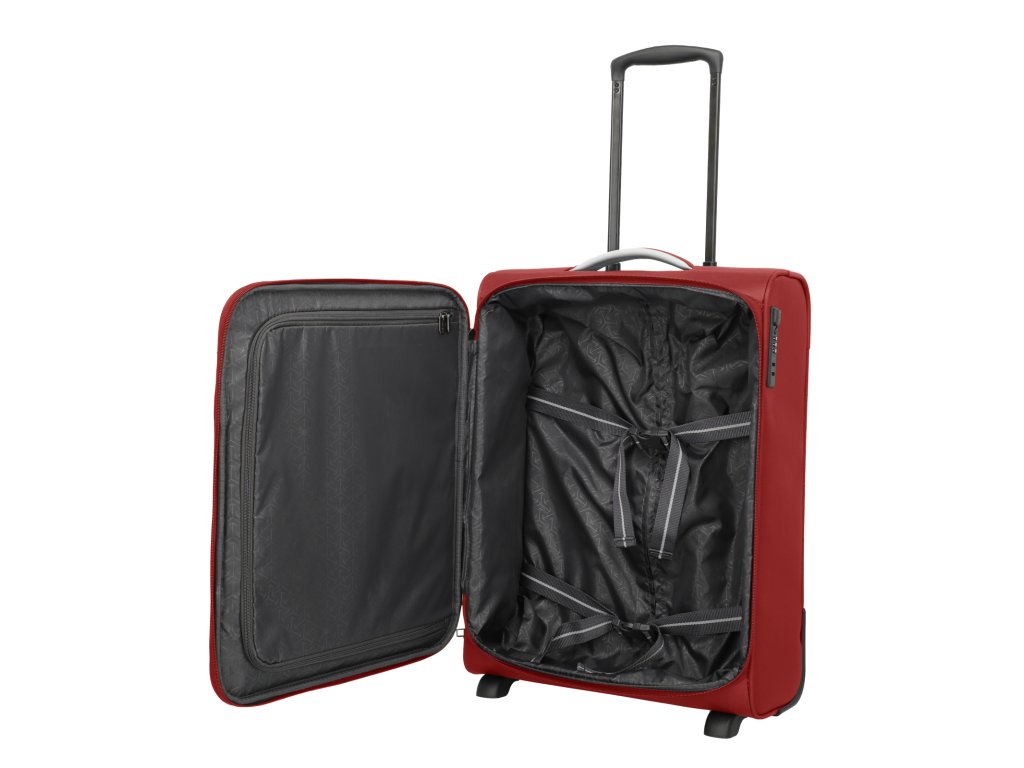 Textilný dvojkolieskový kabínový kufor nemeckej značky Travelite 55 cm v červenej farbe série Jetpack. Kvalitne prepracované kufre sa stanú vašimi vernými spoločníkmi na všetkých vašich cestách, či už pracovných alebo odpočinkových. Túto palubnú batožinu si môžete vziať so sebou do lietadla, ako vyžaduje spoločnosť Ryanair a Condor. Má rozmery, ktoré akceptuje väčšina leteckých spoločností.
