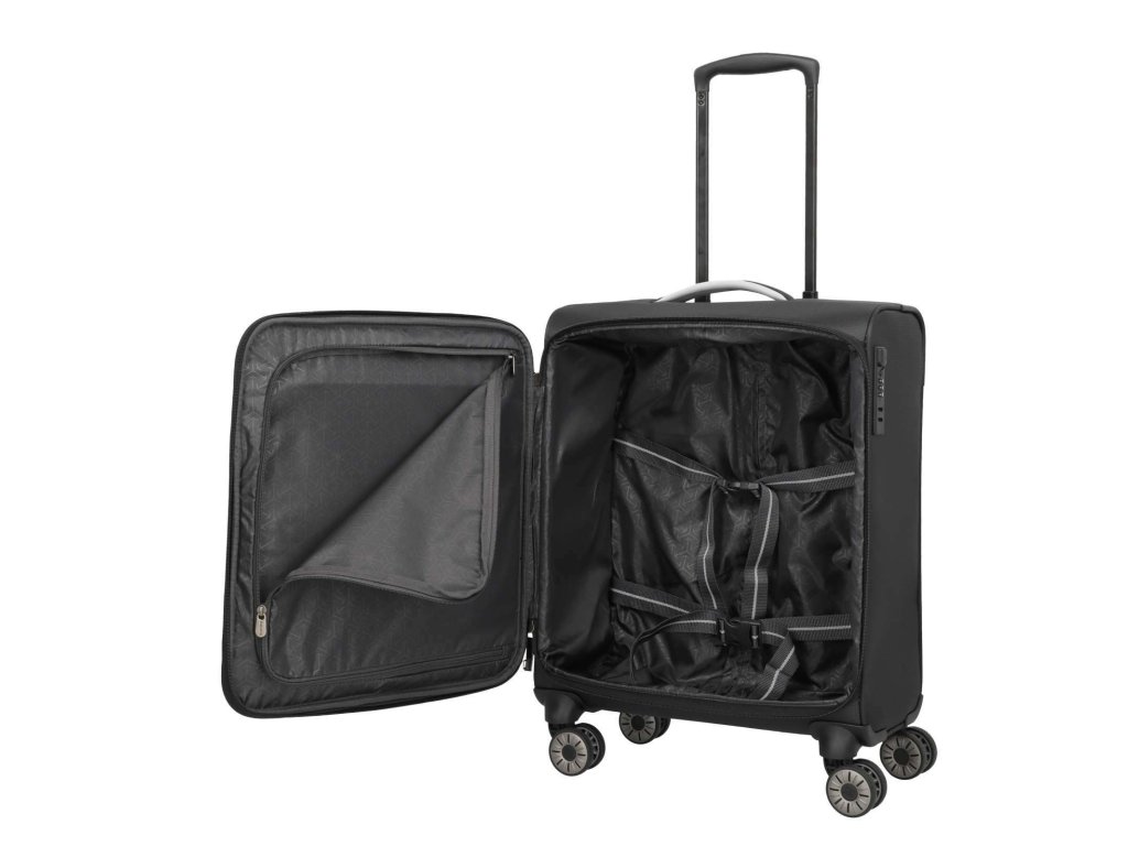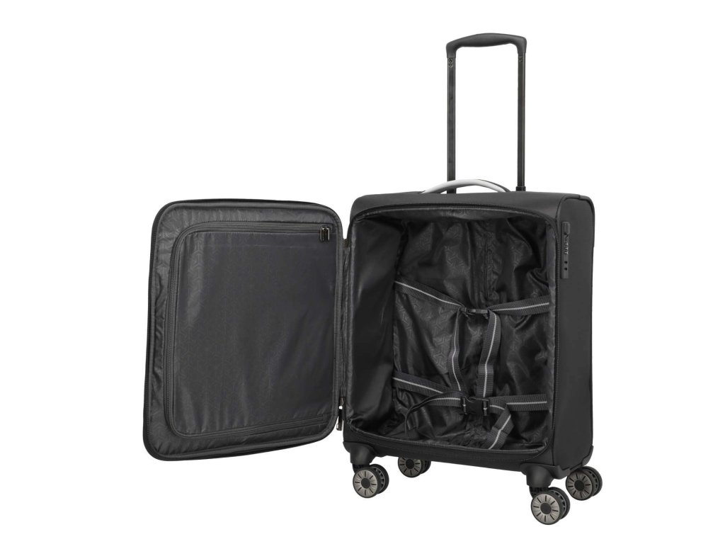 Textilný kabínový kufor nemeckej značky Travelite 55 cm v obľúbenej čiernej farbe série Jetpack. Kvalitne prepracované kufre sa stanú vašimi vernými spoločníkmi na všetkých vašich cestách, či už pracovných alebo odpočinkových. Túto palubnú batožinu si môžete vziať so sebou do lietadla, ako vyžaduje spoločnosť Lufthansa, Austrian, Swiss a ďalšie. Má rozmery, ktoré akceptuje väčšina leteckých spoločností.