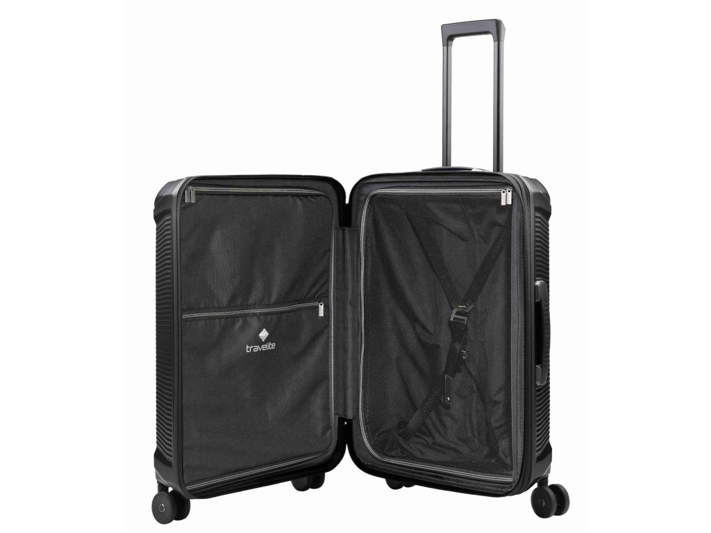 Cestovný kufor veľkosti M značky Travelite v obľúbenej čiernej farbe série Millennium . Tento kufor Travelite Millennium M je presne ten typ batožiny, ktorý chceš mať po ruke, keď nechceš riešiť kompromisy. Rozšíriteľný kufor Millennium Trolley M Dokonalá kombinácia funkčnosti a designu. Kufor Millennium Trolley M kombinuje elegantný vzhľad s robustnou funkčnosťou. Jeho ľahký polykarbonát hladko sa pohybujúce dvojité kolieska s guličkovými ložiskami uľahčujú manipuláciu – ideálny na niekoľkodňové výlety. Objem kufra sa dá ľahko zväčšiť rozopnutím obvodového zipsu. Vnútri zaujme inteligentným usporiadaním, ktoré udržuje oblečenie a doplnky dokonale usporiadané. Vysoko kvalitné spracovanie a čistý dizajn dodávajú kufra odolnosť – ideálny pre každého, kto si cení kvalitu a štýl. Kufor, ktorý vydrží roky - s trvalou kvalitou a nadčasovým štýlom.