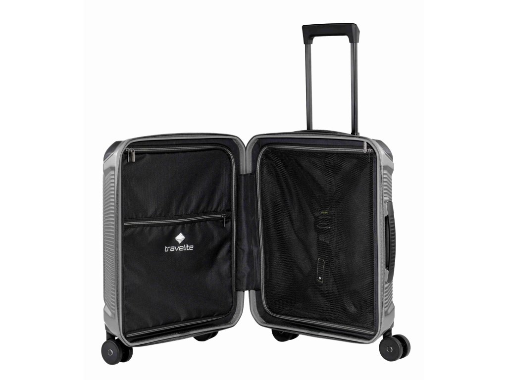 Kabínový cestovný kufor značky Travelite v zaujímavej striebornej farbe série Millennium . Kabínový kufor Travelite Millennium S pocket je ideálna voľba pre tých, ktorí chcú mať dôležité veci hneď po ruke. Oproti klasickej verzii ponúka praktické predné vrecko, kam sa zmestí notebook, dokumenty alebo veci, ktoré potrebuješ vytiahnuť bez otvárania celého kufra. Kompaktný, ľahký a sebavedomý na cesty. Kufor Millennium Trolley S packet je ideálna príručná batožina pre moderných cestovateľov, ktorí si cenia organizovanosť a štýl. Napriek kompaktným rozmerom zaujme priestranným interiérom a šikovným usporiadaním. Vnútri nájdeš praktické členenie s fixačnými popruhmi a deliacou prepážkou, takže oblečenie zostane tam, kam patrí. Superľahký polykarbonát zaisťuje pohodlnú manipuláciu, zatiaľ čo zosilnené ochranné rohy a integrovaný zámok TSA zaručujú bezpečnosť. Štyri hladko sa pohybujúce dvojité kolieska s guličkovými ložiskami zaisťujú plynulé kĺzanie po akomkoľvek povrchu.