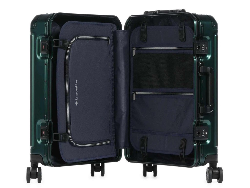 Luxusný hliníkový cestovný kufor 55 cm séria NEXT 2.0 nemeckej značky Travelite v zelenej farbe . Moderný a štýlový je kufor vyrobený z alumínia, ktorý zaručuje pevnosť a pružnosť zároveň. Pokiaľ hľadáte originálny, kvalitný kufor s vysokou odolnosťou, voľte kufre vyrobené z tohto materiálu.