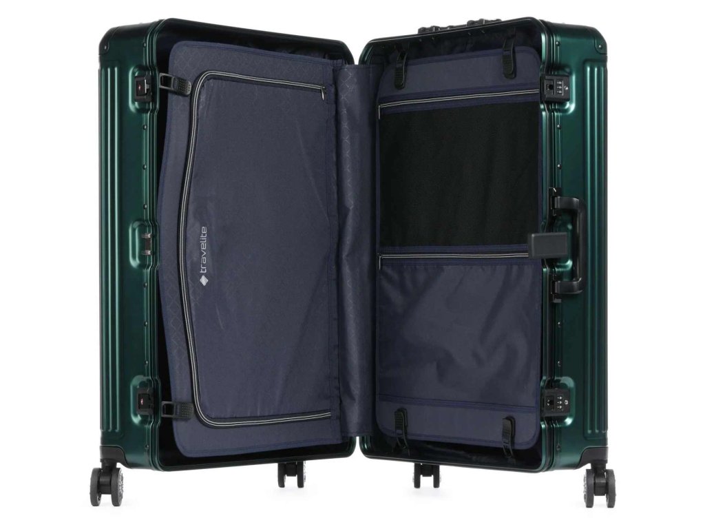 Luxusný hliníkový cestovný kufor 77 cm nemeckej značky Travelite v zelenej farbe. Moderný a štýlový je kufor vyrobený z alumínia, ktorý zaručuje pevnosť a pružnosť zároveň. Pokiaľ hľadáte originálny, kvalitný kufor s vysokou odolnosťou, voľte kufre vyrobené z tohto materiálu.