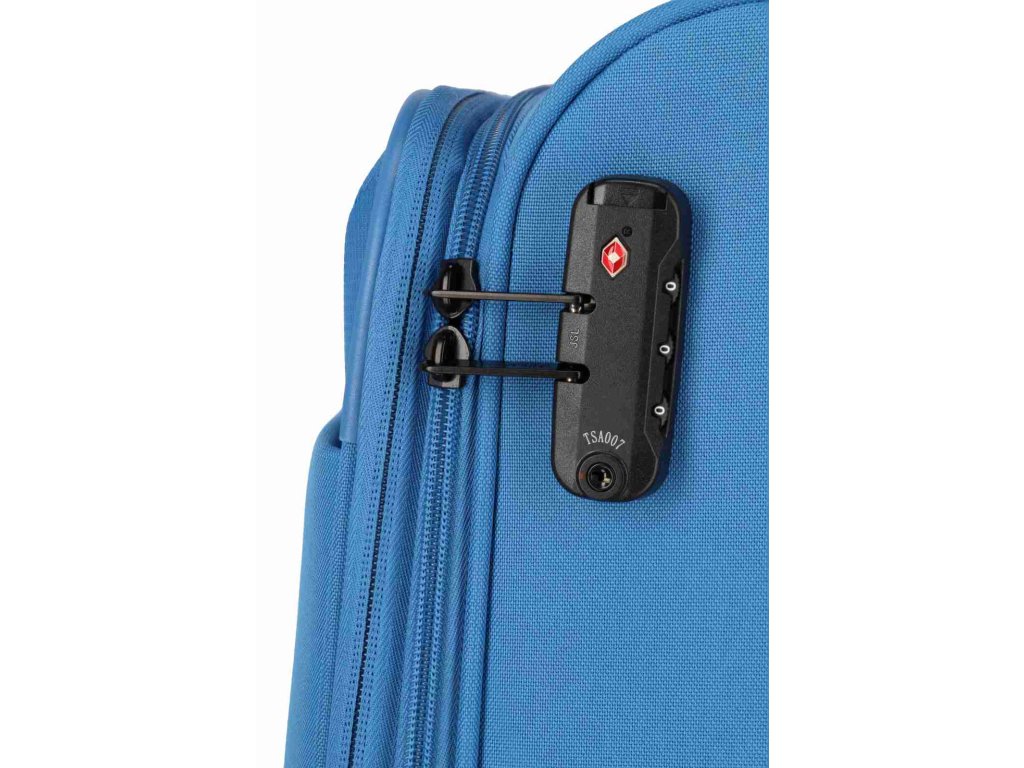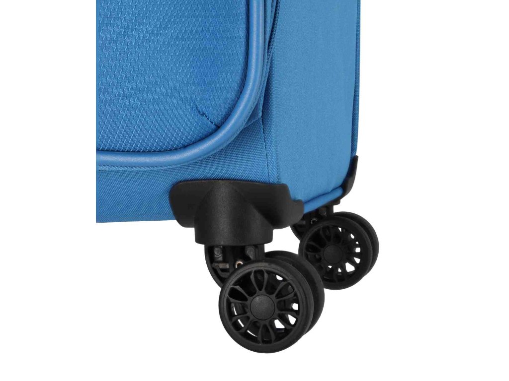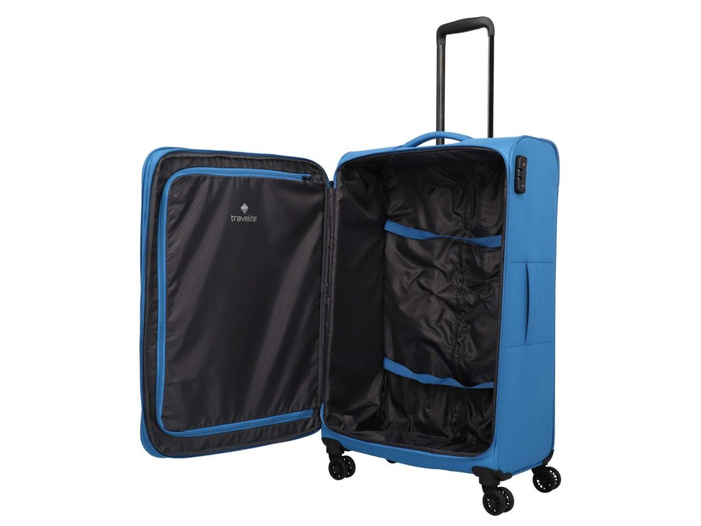 Textilný kufor nemeckej značky Travelite 78 cm vo svetlo modrej farbe série Rugen. Kufre Travelite série Rugen sa stanú vašimi vernými spoločníkmi na všetkých vašich cestách, či už pracovných alebo odpočinkových.