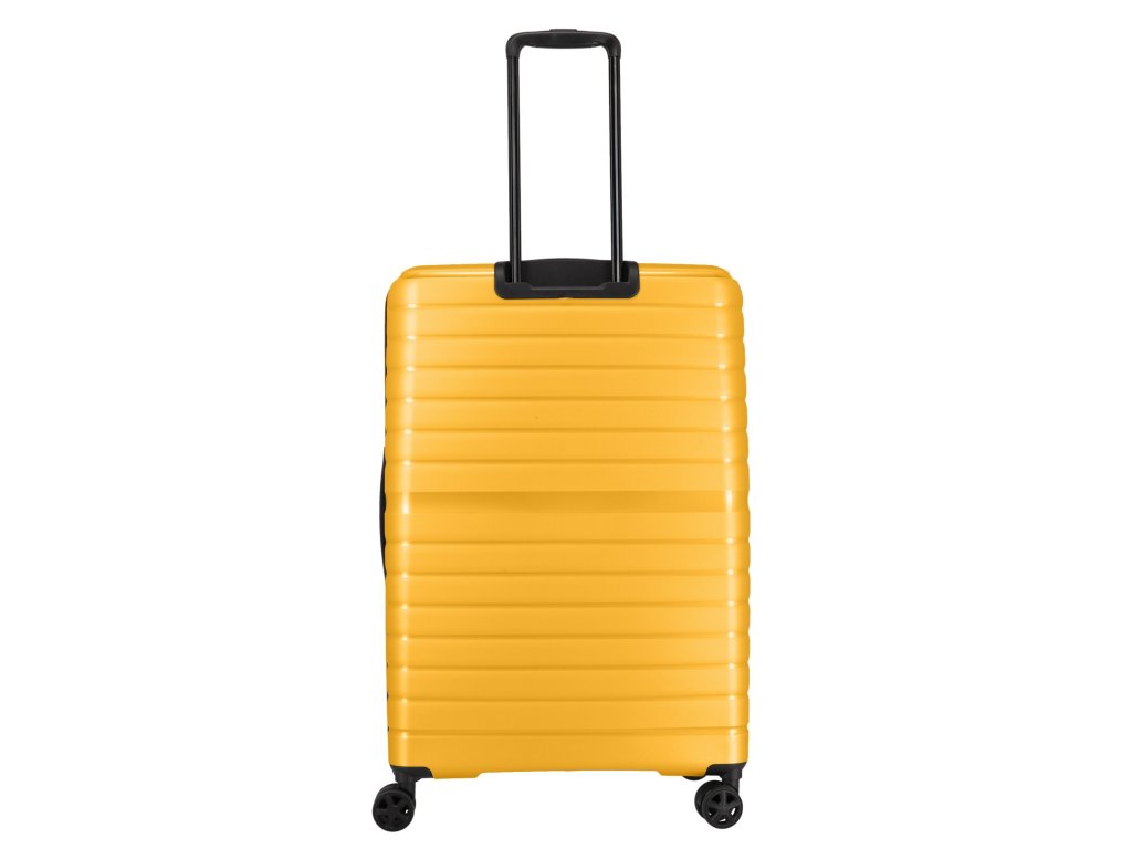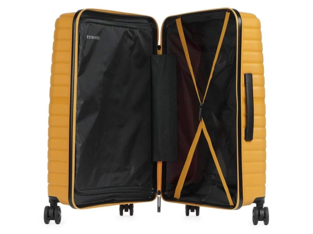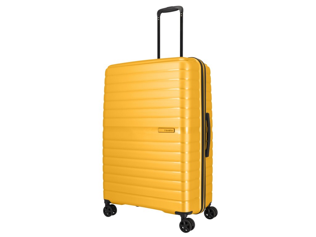 Škrupinový cestovný kufor veľkosti L značky Travelite série Trient v žltej farbe. Vydajte sa na cesty štýlovo a spoľahnite sa na kvalitné kufre firmy Travelite, ktoré sú vyrobené z veľmi odolného materiálu polyproplylén.