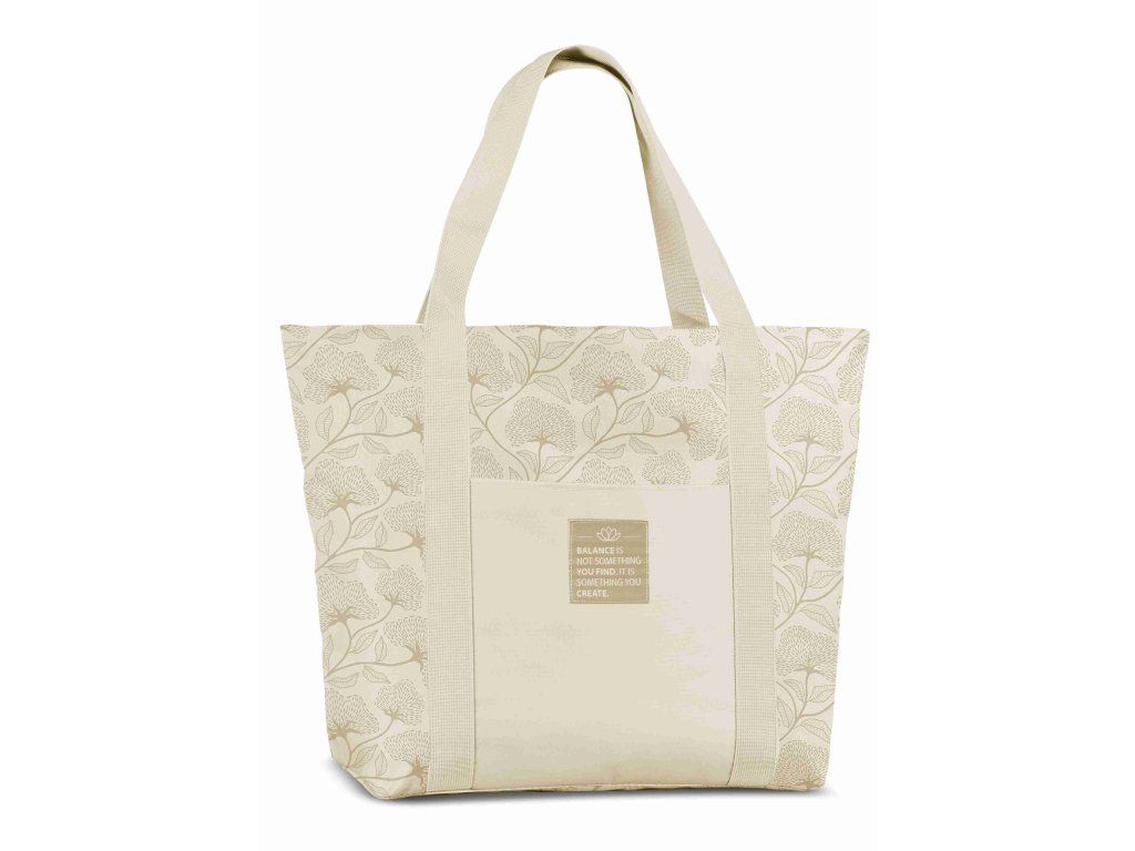 Plážová textilná taška značky Fabrizio Balance v krémovej farbe s potlačou kvetov. Motív dámskej tašky Fabrizio Balance je jemný a elegantný, s prírodnými vzormi v béžových a krémových odtieňoch. Tento dizajn s kvetinovými detailmi evokuje pocit pokoja a harmónie, ideálny na každodenné nosenie. Dizajn s nápisom „Balance is not something you find, it's something you create“ vyjadruje pozitívne a motivujúce posolstvo, ktoré osloví každú ženu. Taška je navrhnutá tak, aby sa ľahko kombinovala s rôznymi outfitmi, či už sa chystáte na pracovnú schôdzku alebo voľný čas s priateľmi. Fabrizio Balance je nielen praktická, ale aj štýlová, a stane sa vašim obľúbeným doplnkom, ktorý podčiarkne váš osobný štýl.