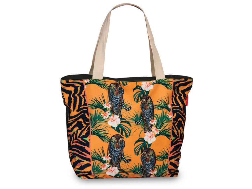 Dámska plátená letná taška s motívom tigrov nemeckej značky Fabrizio v oranžovo-čiernej farbe. Kúpte si na leto túto atraktívnu plážovú tašku a vyrazte k vode štýlovo. Blysknite sa na každej plážové párty. p>