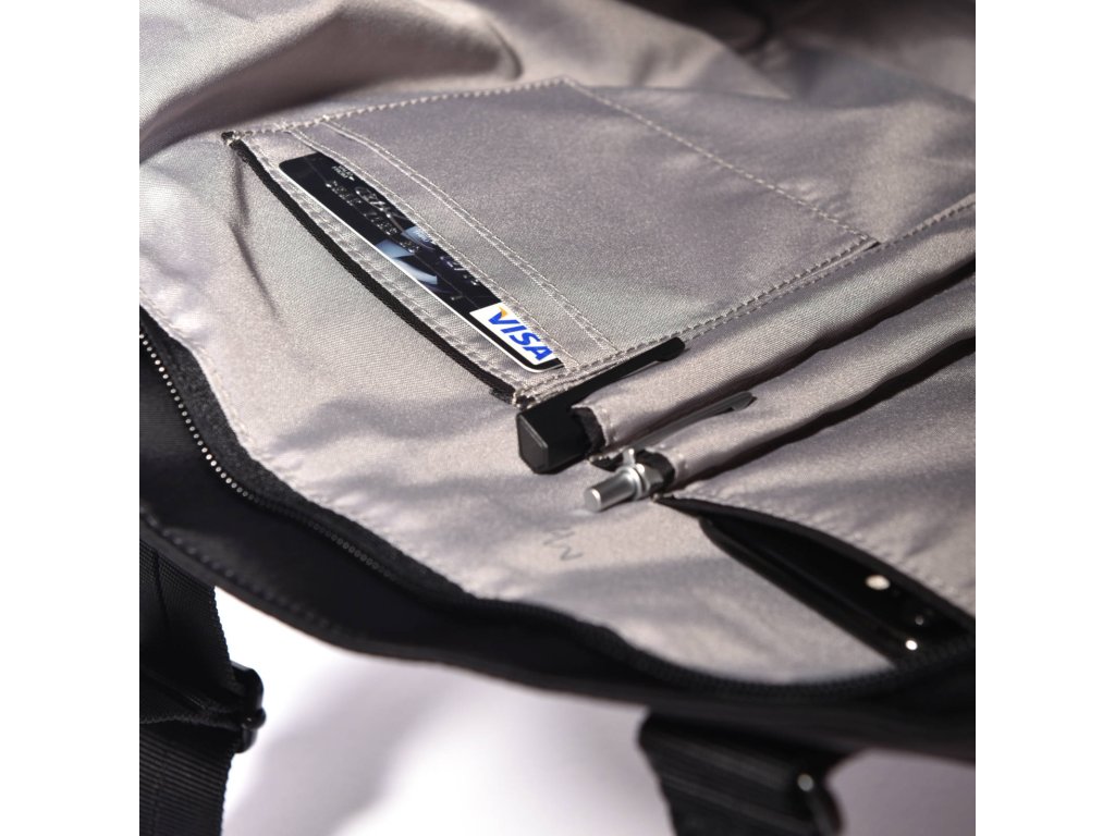 - Hlavné vrecko na zips s vnútorným vreckom na zips s ochranou RDIF