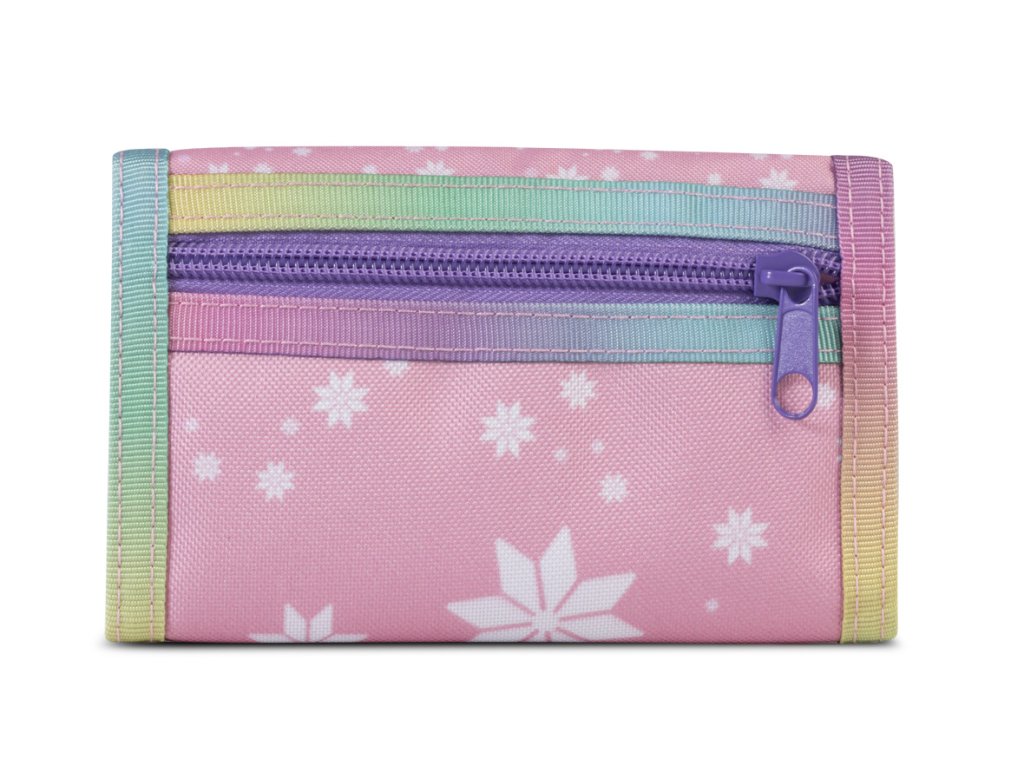 Textilná peňaženka nemeckej značky Fabrizio série Unicorn academy vo svetlo ružovej farbe s motívom jednorožca. Kúzelná detská peňaženka s motívom Unicorn Academy v ružovom prevedení je ideálna prvá peňaženka pre malé slečny. Rozprávková ilustrácia s jednorožcom a hrdinkou zo sveta Unicorn Academy doplnená jemnými pastelovými farbami zaručene poteší každú fanúšičku tejto série. Peňaženka je navrhnutá s dôrazom na praktickosť - ponúka priestor na bankovky, mince aj karty a vďaka pevnému zapínaniu drží všetko bezpečne pohromade. Kompaktné rozmery zaisťujú, že sa ľahko zmestí do batohu, kabelky alebo školskej aktovky. Ideálne na vreckové, prvé úspory aj drobné poklady, ktoré jednoducho musia byť stále pri sebe.