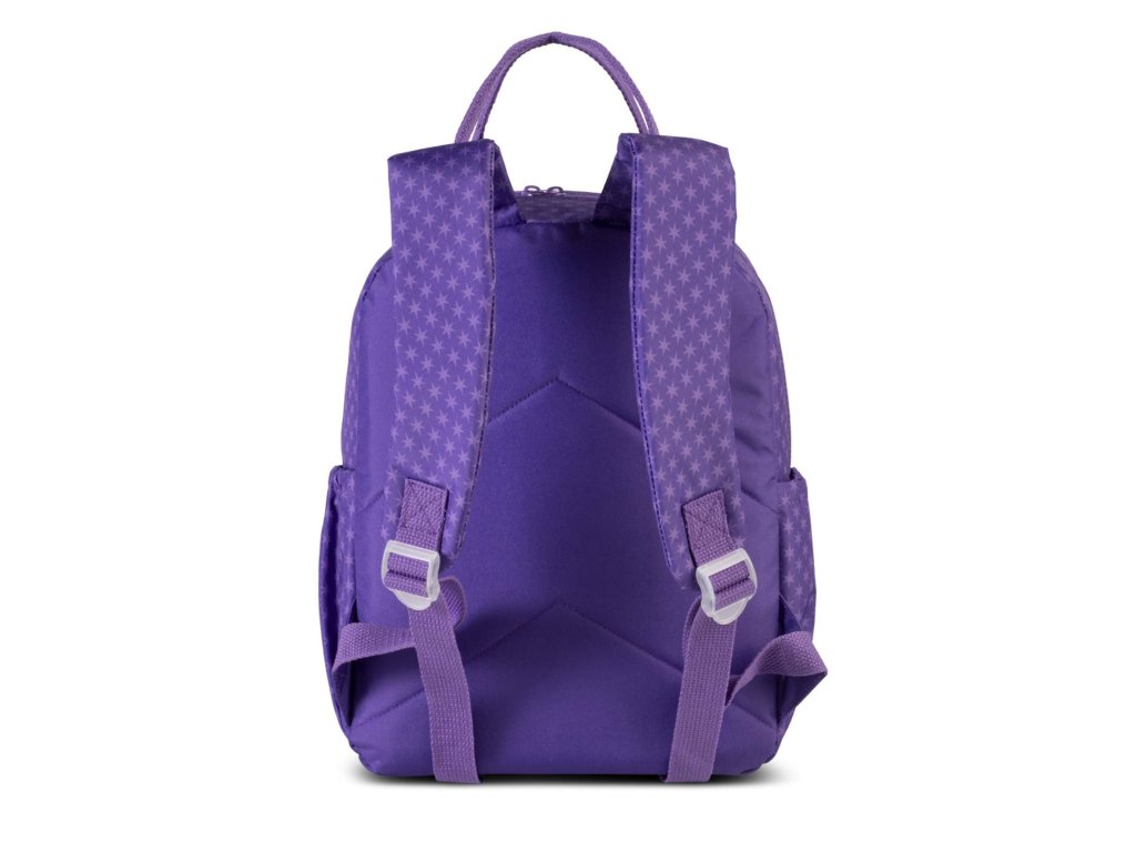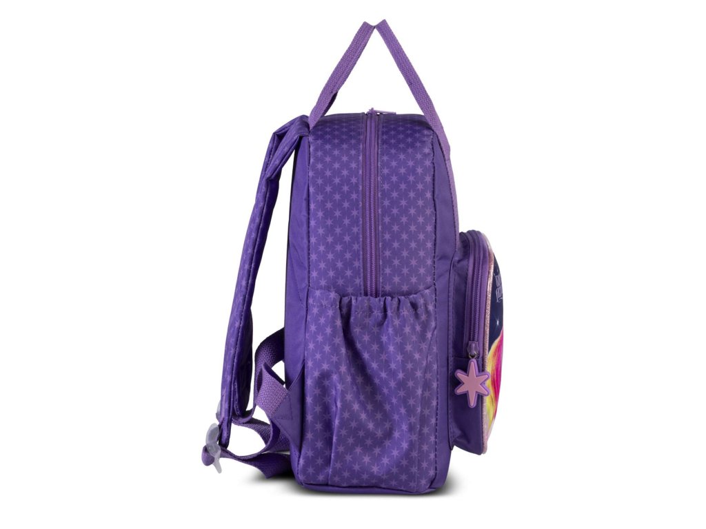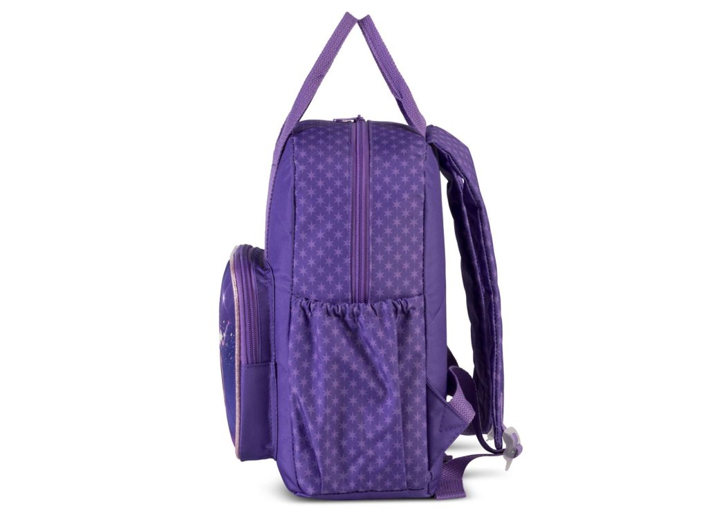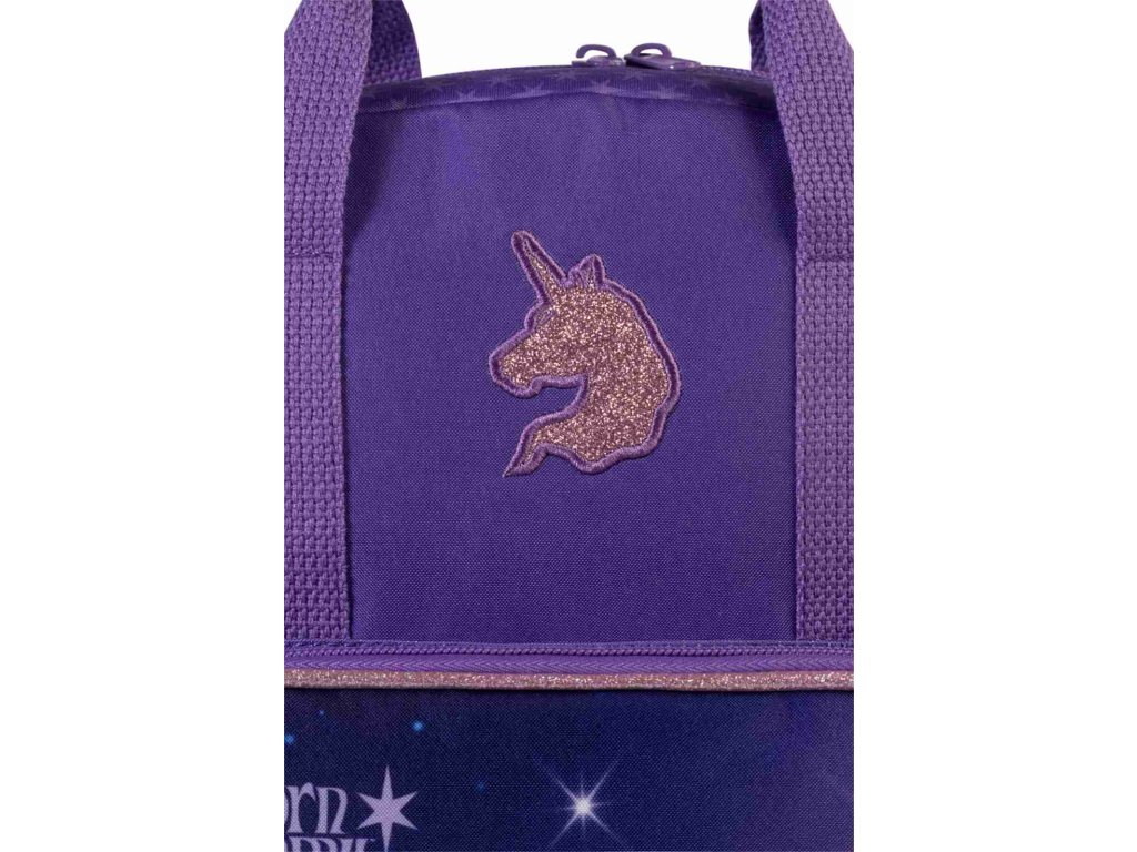 Detský batôžtek nemeckej značky Fabrizio série Unicorn academy vo fialovej farbe s motívom jednorožca s farebnou hrivou. Kúzelný detský batoh s motívom Unicorn Academy, ktorý si zamilujú všetky malé milovníčky jednorožcov. Jemný fialový dizajn doplnený trblietavou nášivkou jednorožca a farebným obrázkom jednorožca s dievčaťom vytvára rozprávkový vzhľad, ktorý zaujme na prvý pohľad. Batoh má kompaktnú veľkosť ideálnu pre menšie deti – skvele sedí na chrbte, nepôsobí zbytočne veľký a je pohodlný aj pri dlhšom nosení. Hodí sa do škôlky, na výlety, krúžky aj na bežné nosenie.