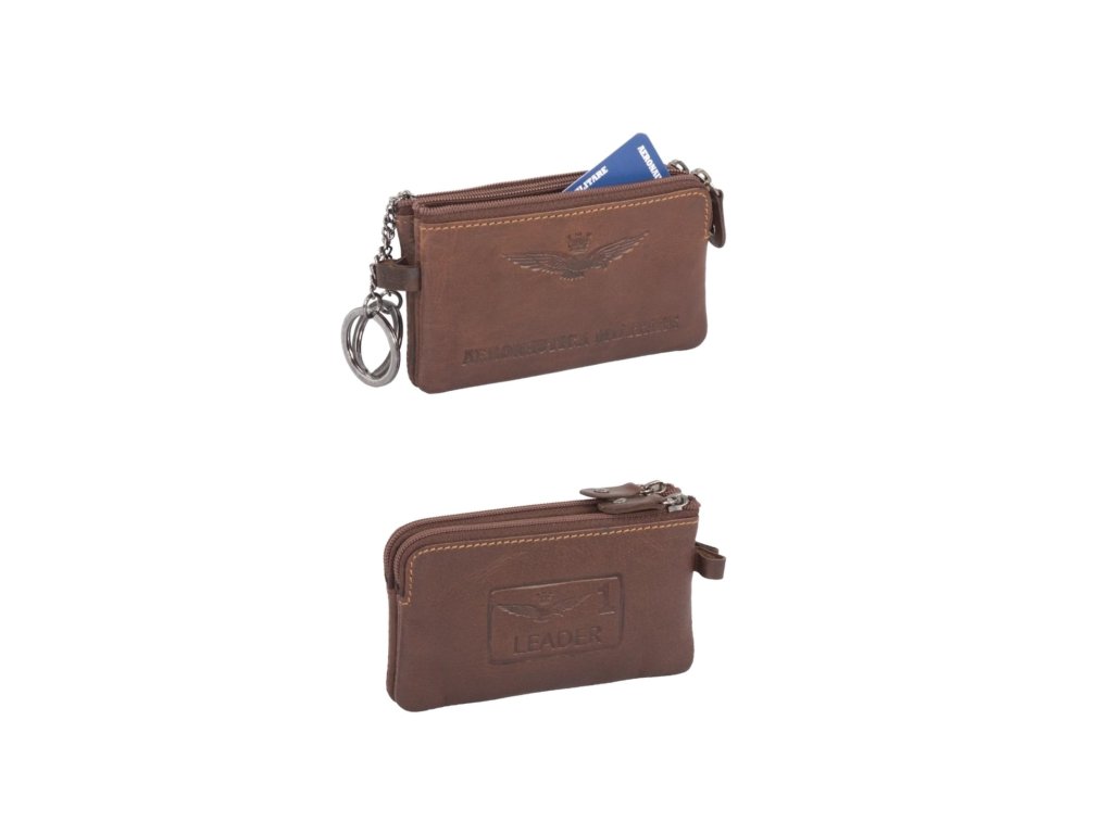 Kožená štýlová kľúčenka od špičkového výrobcu Bugatti série New Eagle v hnedej farbe. Vyrobené z vysoko kvalitnej kože s vintage efektom – výrobky z radu New Eagle od značky Aeronautica Militare sú ideálnym doplnkom pre tých, ktorí hľadajú štýl aj praktickosť. Na prednej strane vyniká reliéfne logo s krídlami, ktoré dodáva kľúčenke výrazný a elegantný charakter. Kontrastné švy a ručné spracovanie podčiarkujú dôraz na detail. Okrem hlavnej priehradky má kľúčenka aj ďalšie vrecko, ktoré je ideálne na uloženie drobných predmetov, ako sú mince alebo karty.