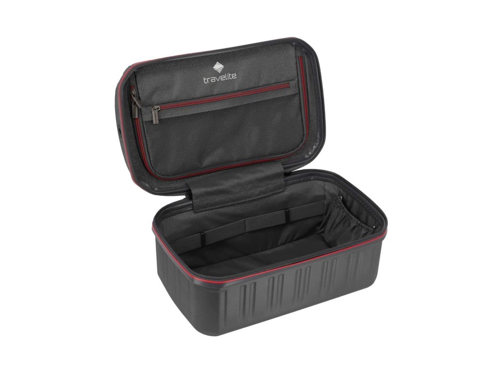 Plastový kozmetický kufor značky Travelite série Dynamic v antracitovej farbe s dvojcestným zipsom. Ideálny parťák na cesty! Či už potrebujete uložiť kozmetiku alebo fotoaparát, kozmetický kufrík Dynamic ponúka dostatok priestoru pre všetko dôležité. Vďaka odolnému materiálu a povrchu s úpravou proti poškriabaniu je obsah vo vnútri perfektne chránený pred nárazmi. Praktické vrecká a zipsové priehradky zároveň zaisťujú prehľadné a jednoduché usporiadanie.