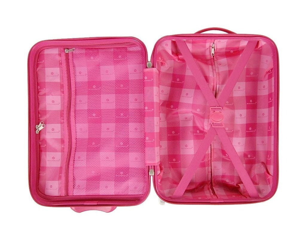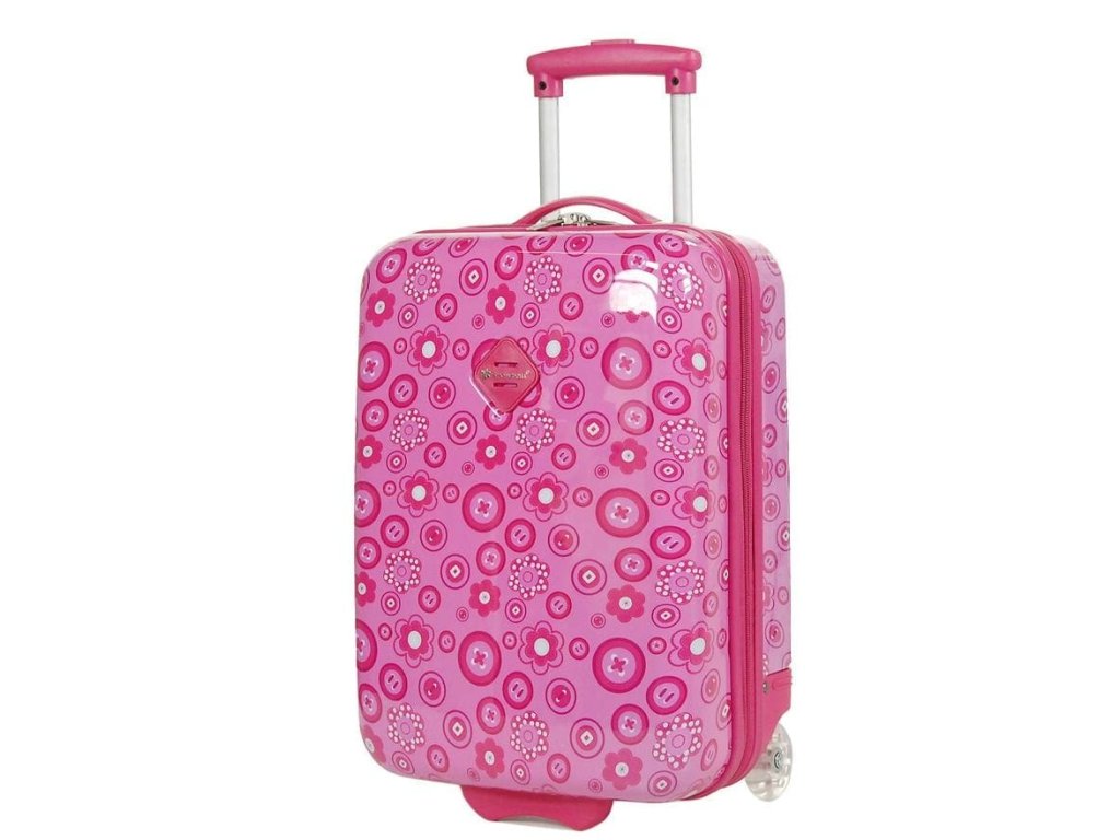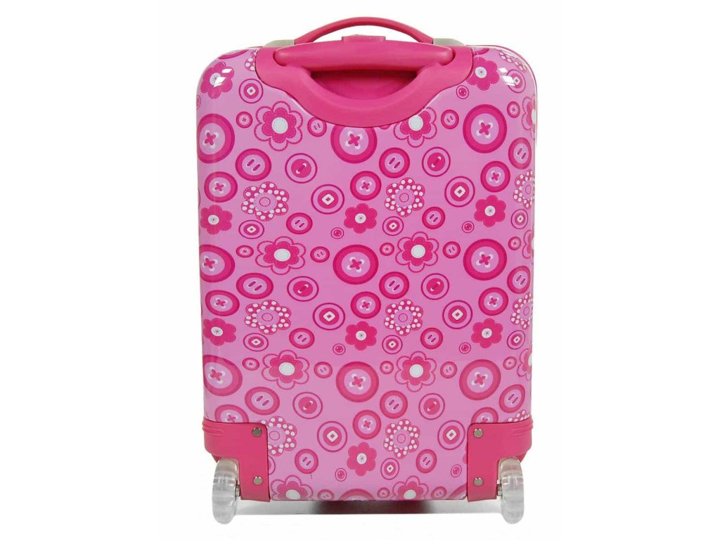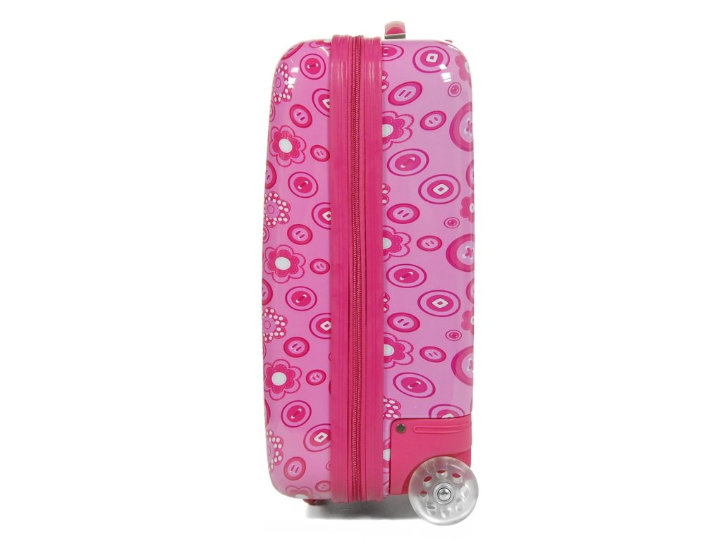 Kabínový plastový kufrík na kolieskach francúzskej značky Snowball s výsuvným madlom vo fuchsiovej farbe s motívom Buttons.