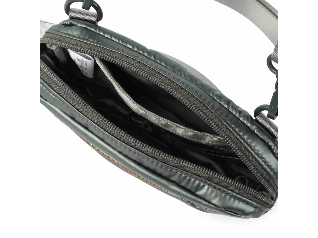 Elegantná a štýlová ľadvinka-cross taška belgickej značky Hedgren z línie Cocoon snug v lesklej khaki farbe umožňuje, aby ste mali ruky vždy voľné. Vďaka kompaktnému dizajnu je ideálny pre prípady, keď potrebujete iba kľúče, peňaženku a telefón. Ľadvinka je vyrobená zo špeciálneho vodoodpudivého materiálu a je vybavená úložnými priestormi.