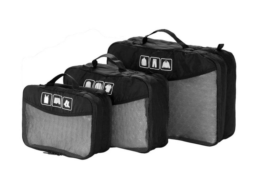 Set 3 kusov skladacích obalov na oblečenie napr. ponožiek, spodnej bielizne so zapínaním na dvojcestný zips francúzskej značky Snowball v obľúbenej čiernej farbe . Vďaka tomuto skladaciemu setu obalov ochránite svoje oblečenie a udržíte prehľad v cestovnej batožine.