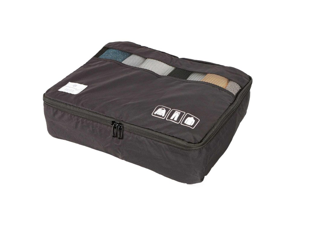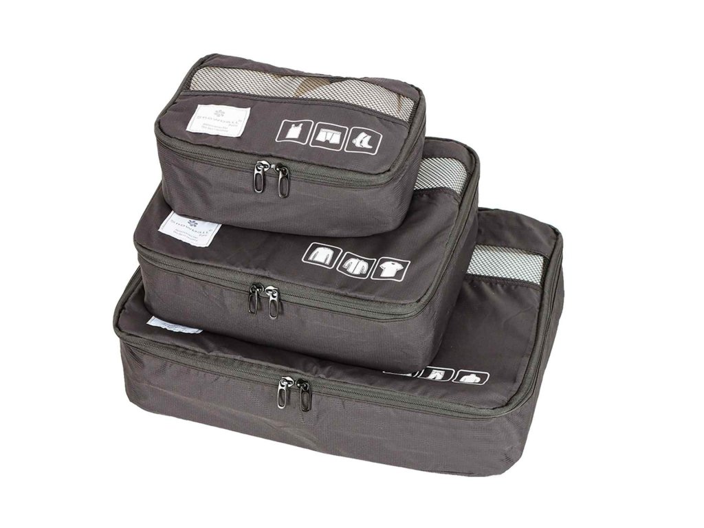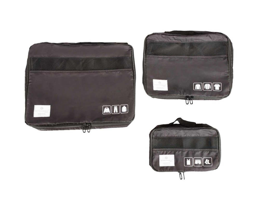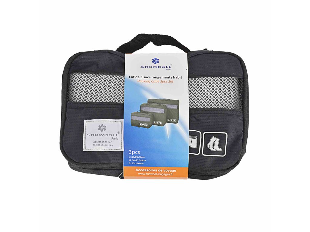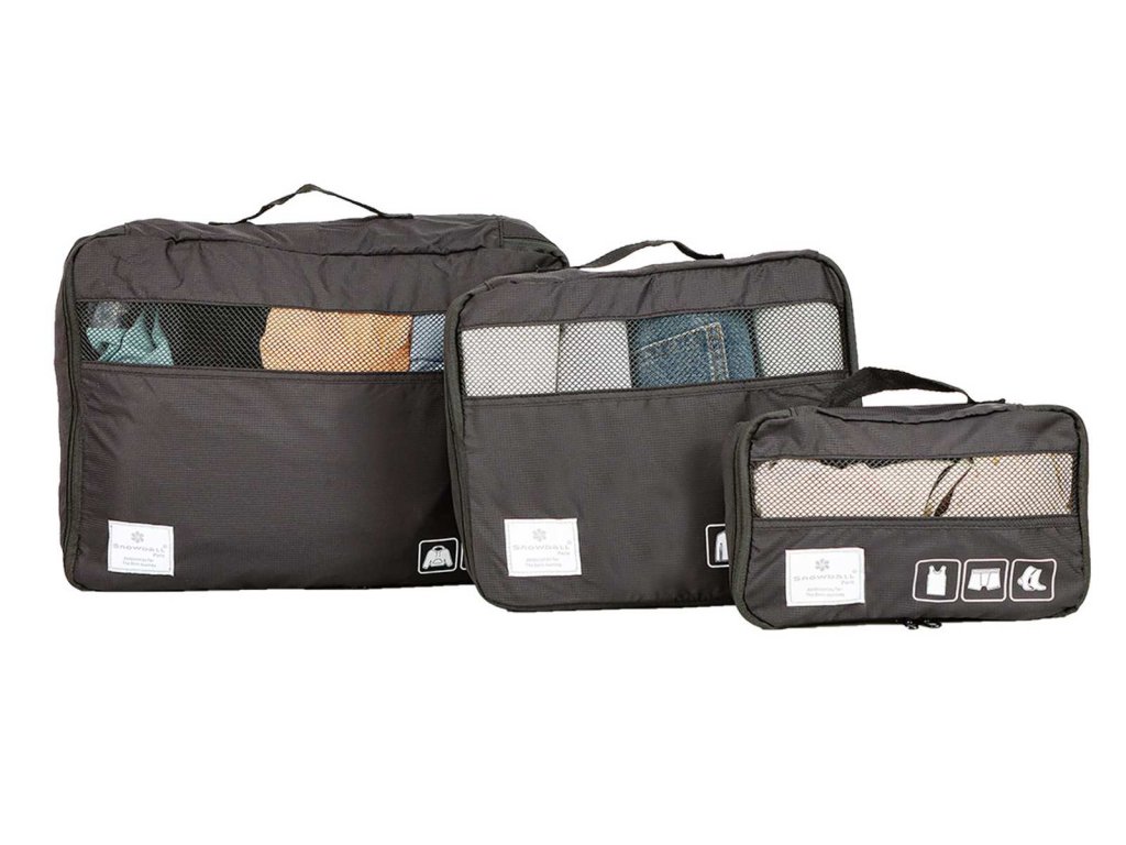Set 3 kusov skladacích obalov na oblečenie napr. ponožiek, spodnej bielizne so zapínaním na dvojcestný zips a prednou sieťovanou stranou značky Snowball v obľúbenej čiernej farbe. Vďaka tomuto skladaciemu setu obalov ochránite svoje oblečenie a udržíte prehľad v cestovnej batožine.