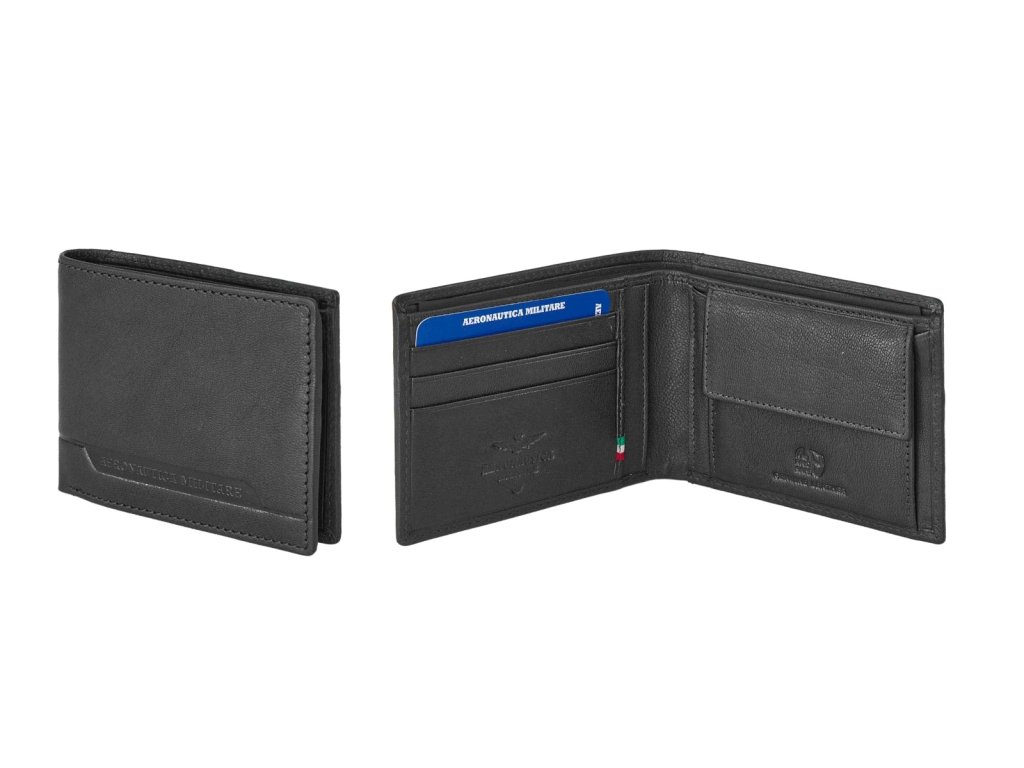 Pánska kožená peňaženka talianskej prestížnej značky Aeronautica Militare série Moon v obľúbenej čiernej farbe. Štýlová peňaženka, ktorá sa hodí pre športovo založených mužov, ktorí si potrpia aj na elegancii.