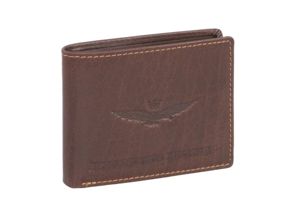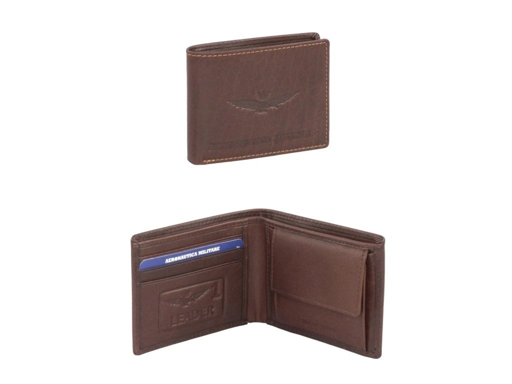 Pánska kožená peňaženka talianskej prestížnej značky Aeronautica Militare série New Eagle v hnedej farbe. Vyrobené z vysoko kvalitnej kože s vintage efektom – tieto peňaženky z radu New Eagle od značky Aeronautica Militare sú ideálnym doplnkom pre tých, ktorí hľadajú štýl aj praktickosť. Na prednej strane vyniká reliéfne logo s krídlami, ktoré dodáva peňaženke výrazný a elegantný charakter. Kontrastné švy a ručné spracovanie podčiarkujú dôraz na detail.