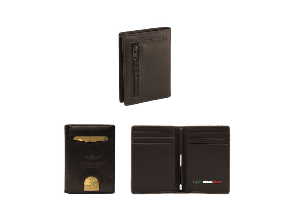 Pánska kožená peňaženka talianskej prestížnej značky Aeronautica Militare série Target clip v obľúbenej hnedej farbe. Štýlová peňaženka, ktorá sa hodí pre športovo založených mužov, ktorí si potrpia aj na elegancii.