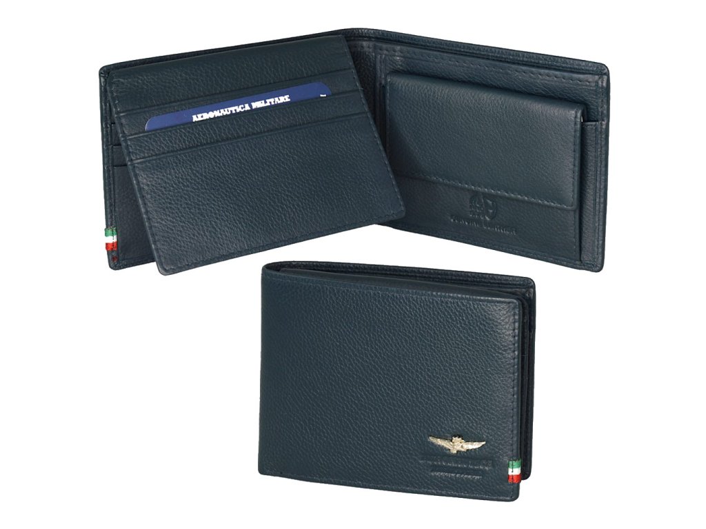 Pánska kožená peňaženka talianskej prestížnej značky Talianske Aeronautica Militare v obľúbenej modrej farbe. Štýlová peňaženka, ktorá sa hodí pre športovo založených mužov, ktorí si potrpia aj na eleganciu.
