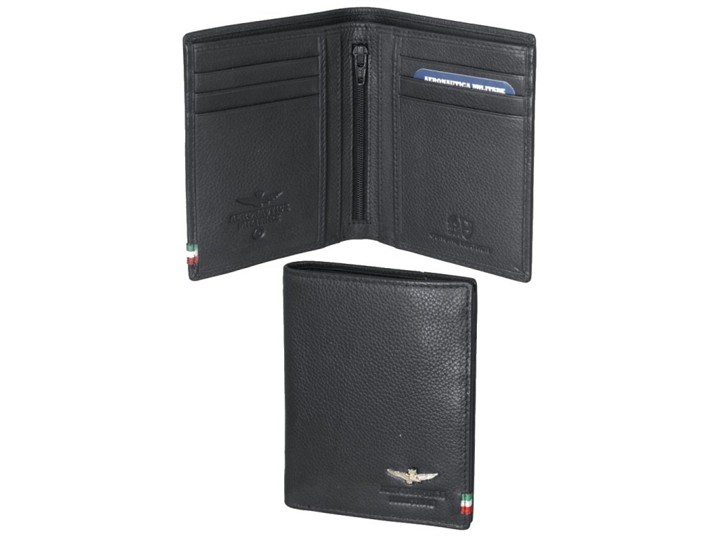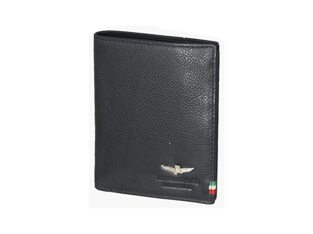 Pánska kožená peňaženka talianskej prestížnej značky Talianske Aeronautica Militare v obľúbenej čiernej farbe. Štýlová peňaženka, ktorá sa hodí pre športovo založených mužov, ktorí si potrpia aj na eleganciu.