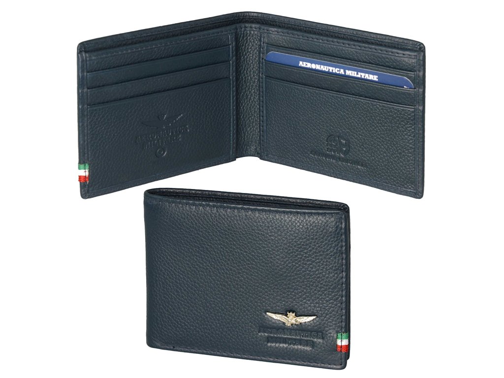 Pánska kožená peňaženka talianskej prestížnej značky Talianske Aeronautica Militare v modrej farbe. Štýlová peňaženka, ktorá sa hodí pre športovo založených mužov, ktorí si potrpia aj na eleganciu.
