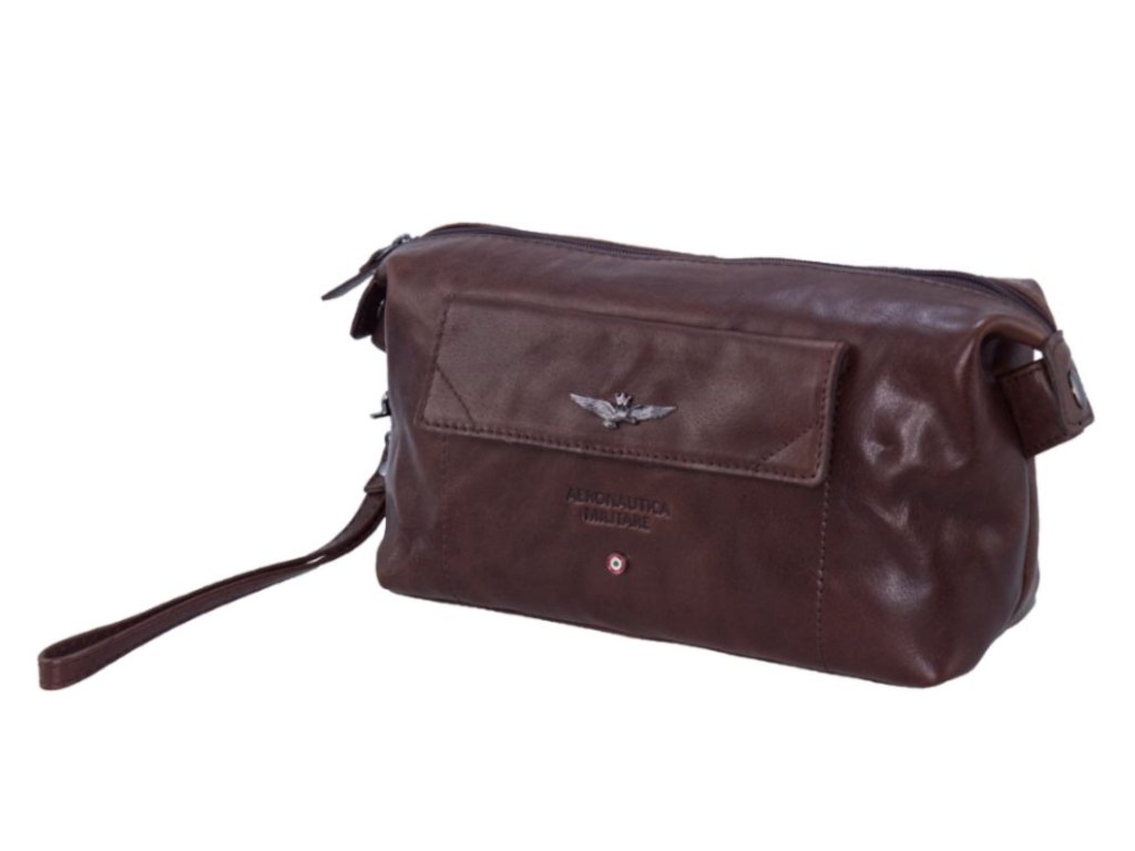 Praktická kožená taška do ruky na osobné veci alebo kozmetiku prestížnej značky Talianske vzdušné sily v hnedej farbe. Tašku si obľúbite vďaka komfortným rozmerom a uschováte do nej všetky svoje najdôležitejšie veci, ako je peňaženka, mobilný telefón, doklady i kľúče. Kúpte si tento luxusný, vkusný a moderný doplnok!