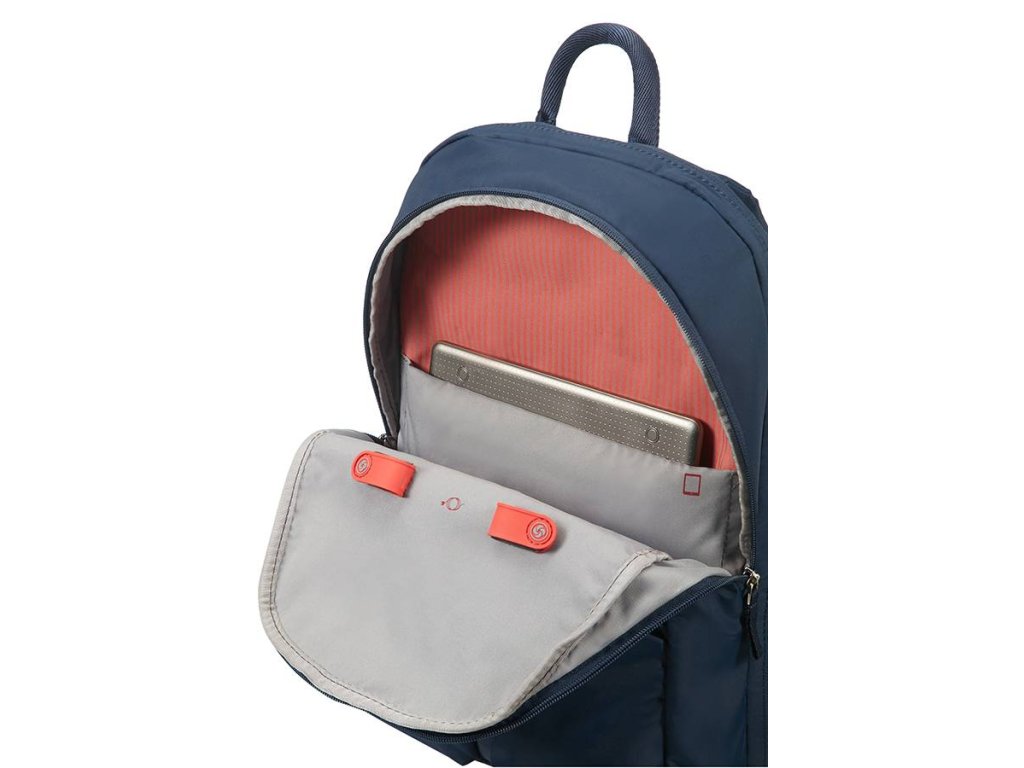 Dámsky batohna notebook ROUNDET BACKPACK 14,1'' z kolekcie Lady Tech má z prednej strany dve menšie a jednu väčšiu kapsu na zips sorganizérem.Má nastaviteľné chrbtové popruhy a ochranné kovové nožičky na spodnej strane. Batoh jerozdělen do dvoch častí. V jednej je polstrovaná priehradka na tabliet, úchyty a vrecko na príslušenstvo. V druhej polstrovaný priestor pre notebook.