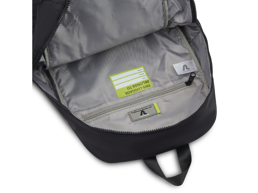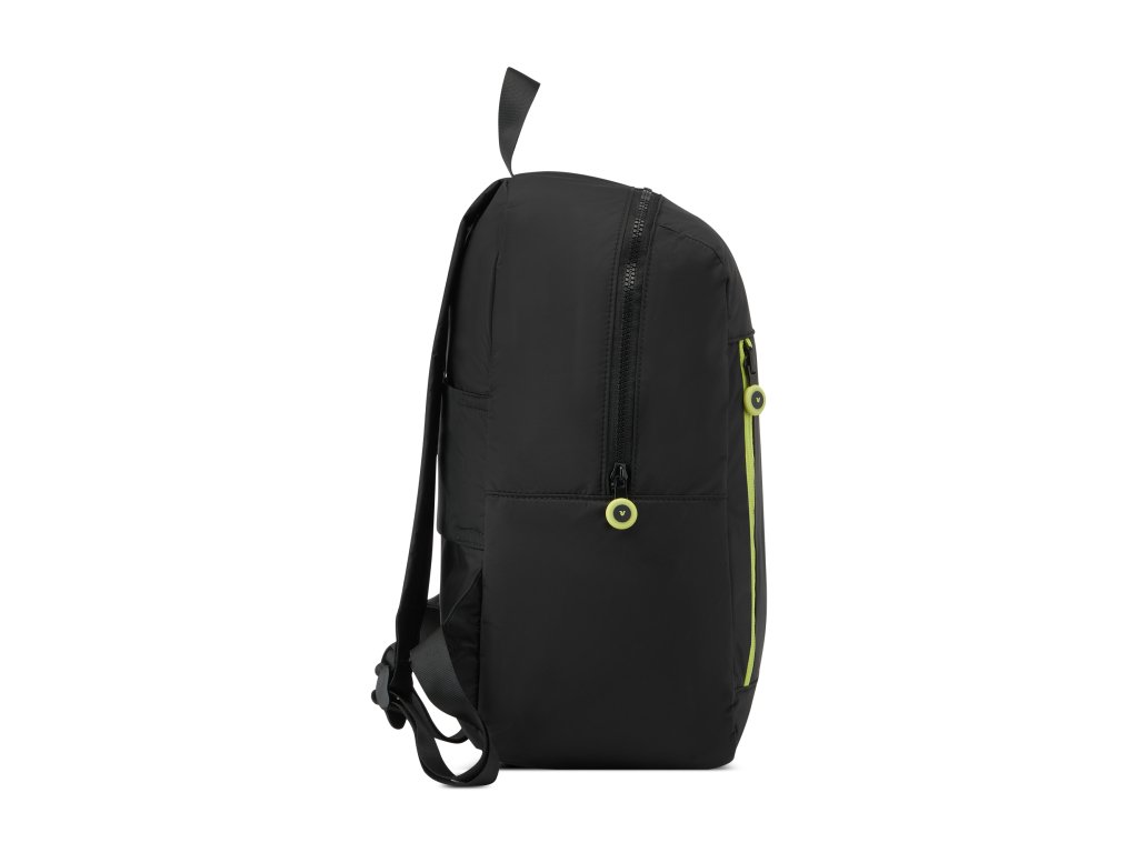 Štýlový skladací batoh talianskej značky Roncato v čiernej farbe s limetkovou sériou COMPACT . Tento trendy batoh je vodeodolný, veľmi ľahký a navyše sa dá zbaliť do vrecka so sebou ako náhradná batožina. Batoh si môžete vziať so sebou do lietadla, ako to vyžaduje spoločnosť Ryanair. Má rozmery, ktoré akceptuje väčšina leteckých spoločností.