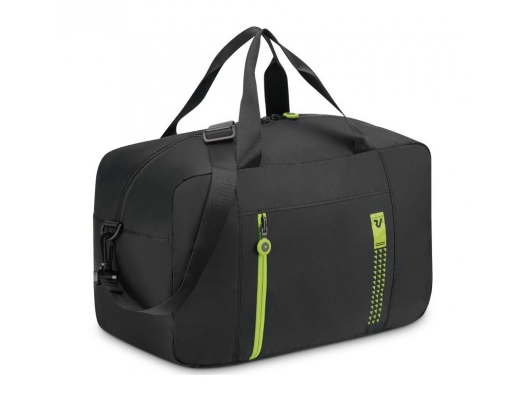 Skladacia taška 40 cm do lietadla talianskej značky Roncato v čiernej farbe s limetkovou. Táto trendy taška je vodeodolná, veľmi ľahká a navyše sa dá zbaliť do vrecka sebou ako náhradnú batožinu. Tašku si môžete vziať so sebou do lietadla, ako to vyžaduje spoločnosť Ryanair. Má rozmery, ktoré akceptuje väčšina leteckých spoločností.