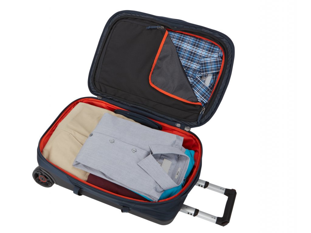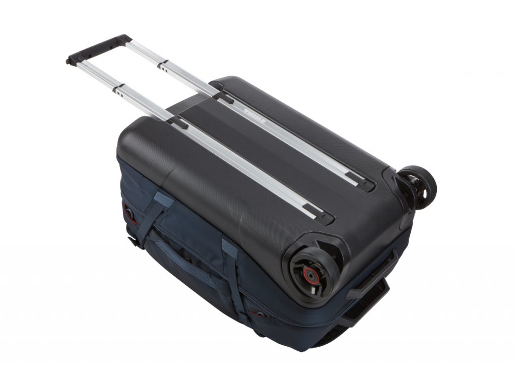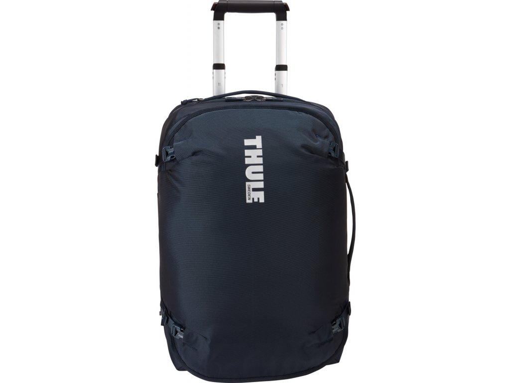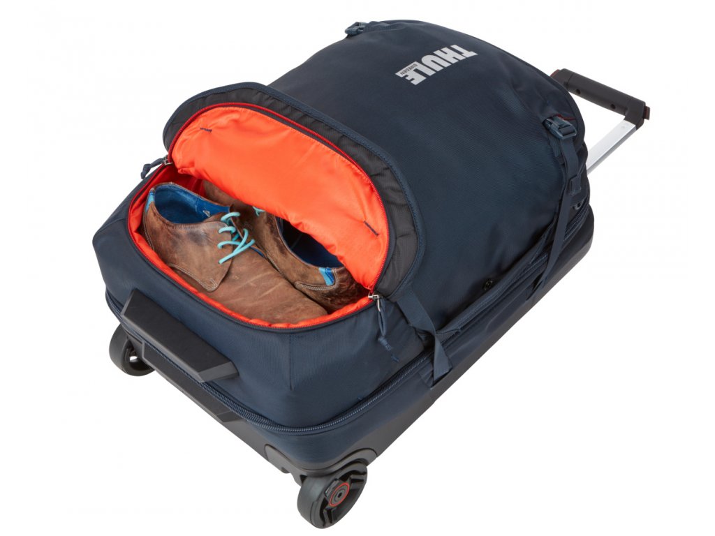Cestovný kufor 56 l modrosivej farby značky Thule z edície Subterra 3 v 1 možno pohodlne rozdeliť na dva nezávislé kufre spĺňajúce podmienky pre príručnú batožinu čo uľahčí odbavenie.