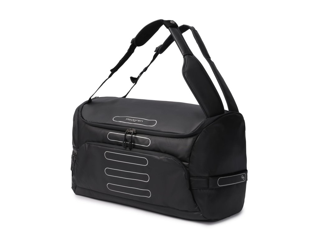 Moderná taška-batoh v jednej belgickej značky Hedgren série Comby Performance Sojourn v obľúbenej čiernej farbe. Na taške Sojourn P je niečo špeciálne, táto cestovná taška sa po uvoľnení popruhu ľahko premení na batoh. Alebo môžete na prenášanie svojich vecí v tejto objemnej a ľahkej taške použiť dve bočné rukoväte. Comby Performance ponúka všetko, čo má najpredávanejšiu kolekciu Comby SS, a ešte viac! Pokiaľ chcete doslova aj obrazne dôjsť o kúsok ďalej, Comby Performance by mohol byť vašim ideálnym spoločníkom. Táto vysoko výkonná kolekcia obsahuje odolnú, recyklovanú tkaninu s vysokou vodoodpudivou úpravou, ochranné zipsové pásky a reflexné detaily pre lepšiu viditeľnosť na ceste.
