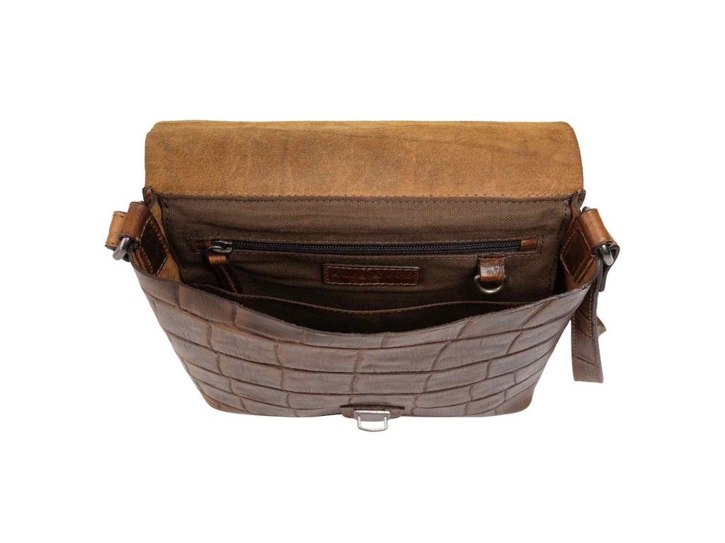 Pánska kožená taška zaujímavého krokodílieho razeného vzhľadu luxusnej značky Bugatti série Nevio v koňakovo hnedej farbe . Taška je vhodným doplnkom pre úspešných mužov, čo chcú byť in. Ponúka mnoho miesta aj pre vaše doklady. Pochváliť sa môže určite aj skvelým spracovaním a detailmi.