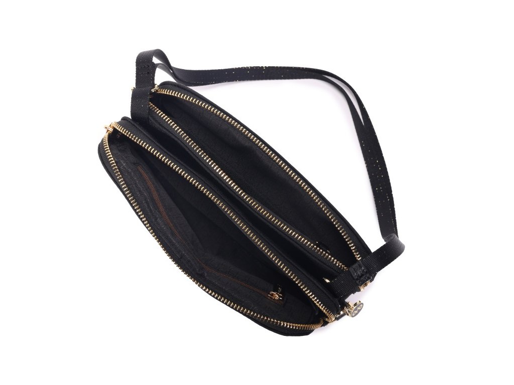 Dámska cross taška, kabelka belgickej značky Hedgren Fika Doppio v obľúbenej čiernej so zlatými doplnkami a zipsom (podľa výrobcu celebration black) farbe s ochranou RFID pre denné nosenie . Svojou veľkosťou je ideálny na bezpečnú prepravu osobných dokladov a vecí. Taška-kabelka má zabezpečenú ochranu pred krádežou osobnej identity či súkromných dát pri technológii RFID (Radio Frequency Identification), ktorá sa používa pri načítaní bezkontaktných platobných kariet alebo identifikačných dokladov. Taška je vyrobená zo 100% RPET polyesteru s detailmi z ekologickej kože.