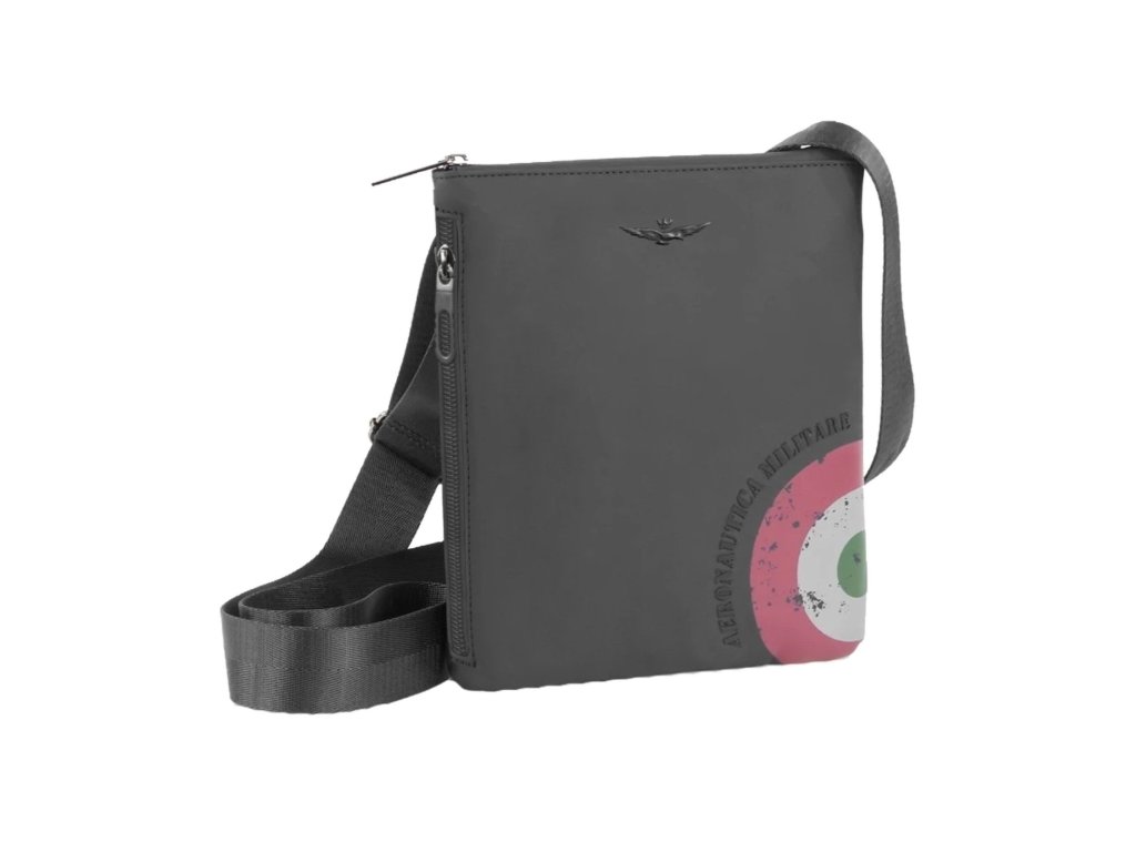 Štýlová ľahká cross taška cez rameno alebo krížom na osobné veci prestížnej značky Aeronautica Militare série Runway v obľúbenej čiernej farbe. Tašku si obľúbite vďaka komfortným rozmerom a uschováte do nej všetky svoje najdôležitejšie veci, ako je peňaženka, mobilný telefón, doklady aj kľúče. Cross taška z technického pogumovaného materiálu je perfektnou voľbou pre tých, ktorí hľadajú spojenie funkčnosti, športovej elegancie a talianskeho štýlu. Tento štýlový doplnok stelesňuje jedinečný charakter značky Aeronautica Militare a je navrhnutý tak, aby odolal nepriaznivým poveternostným podmienkam. Na hornej časti nájdete decentné logo značky , zatiaľ čo spodnú časť zdobí výrazná grafika s motívom talianskej trikolóry a nápisom Aeronautica Militare , ktoré podčiarkujú jej exkluzívny vzhľad.