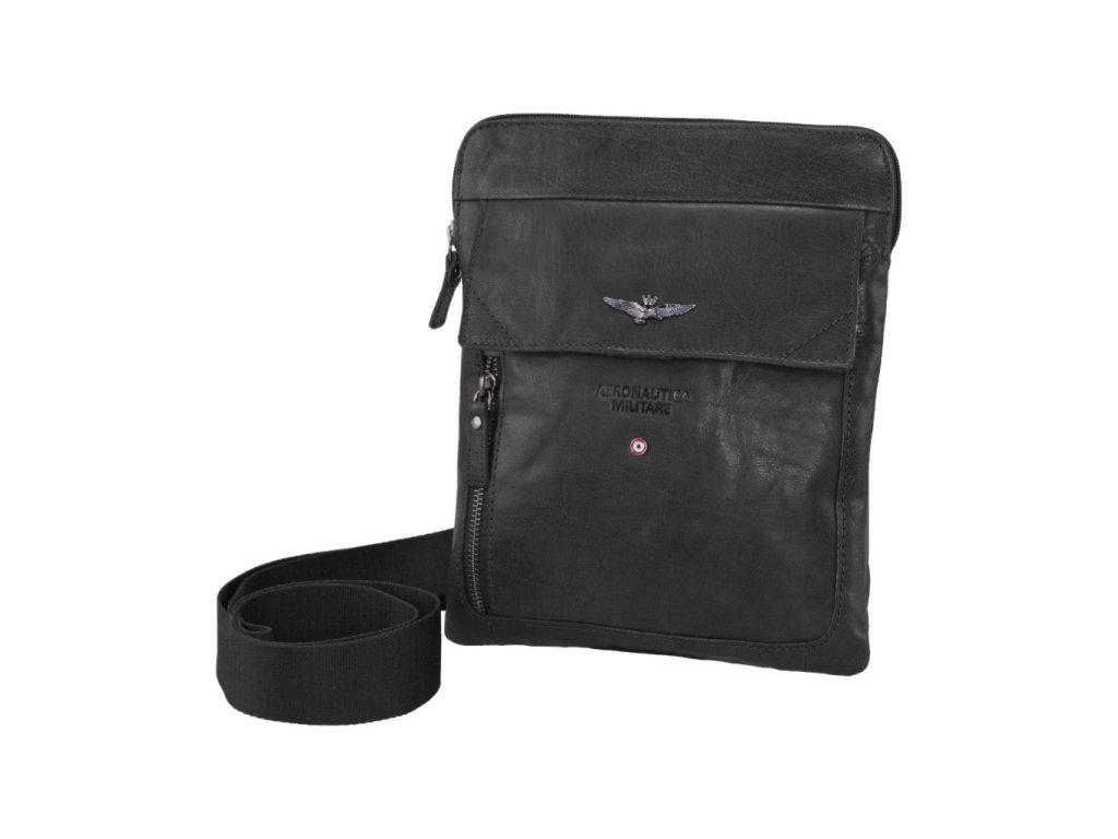 Praktická kožená taška přes rameno nebo křížem na osobní věci prestižní značky Aeronautica Militare v černé barvě. Tašku si oblíbíte díky komfortním rozměrům a uschováte do ní všechny své nejdůležitější věci, jako je peněženka, mobilní telefon, doklady i klíče. Pořiďte si tento luxusní, vkusný a moderní doplněk!