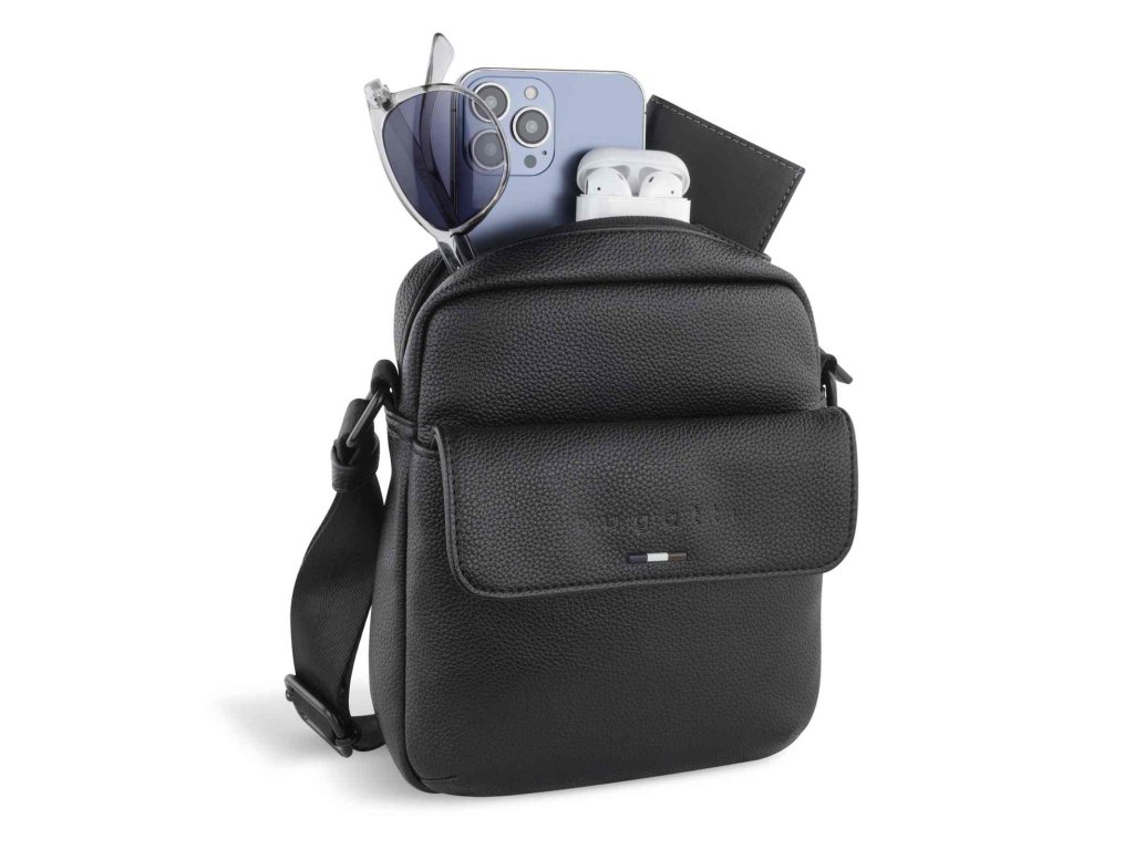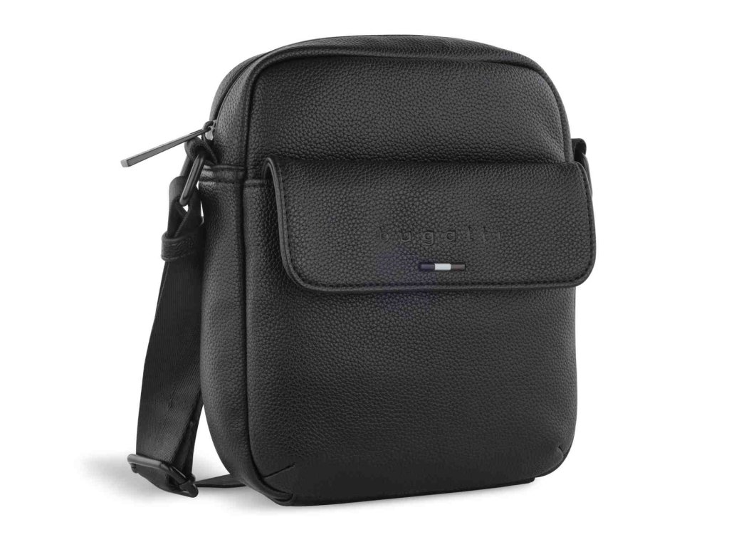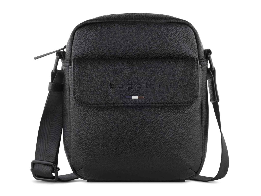 Pánska taška veľkosti S luxusnej značky Bugatti v obľúbenej čiernej farbe z línie RICO. RICO – táto kolekcia je moderná a štýlová zároveň. Precízne reliéfne logo skvele dopĺňa elegantný a čistý design. Kvalitne spracovaná syntetická koža v čiernej farbe dodáva kolekcii klasický vzhľad. S crossbody mini taškou a funkčnou cestovnou/športovou taškou je rad RICO ideálne rozšírený.